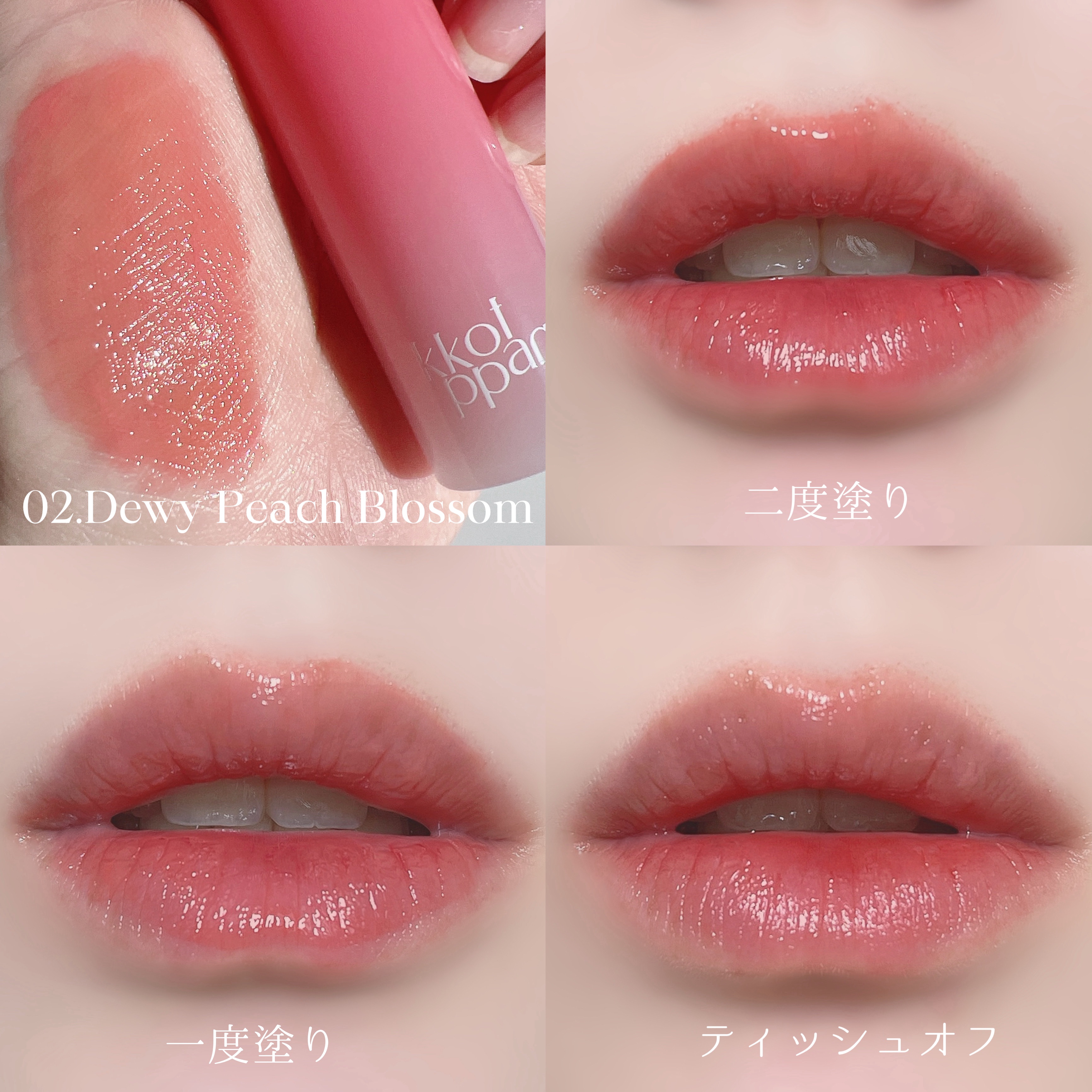 kkotppangアイスドロップウォーターティント02デューイピーチブロッサム✔️軽い✔️簡単✔️きれい水のように軽いテクスチャー水のように簡単に塗れる使用感水のように染み込んだ後、透明に満ちてくるお上品な光前回は03ピオニーフィルター、04...