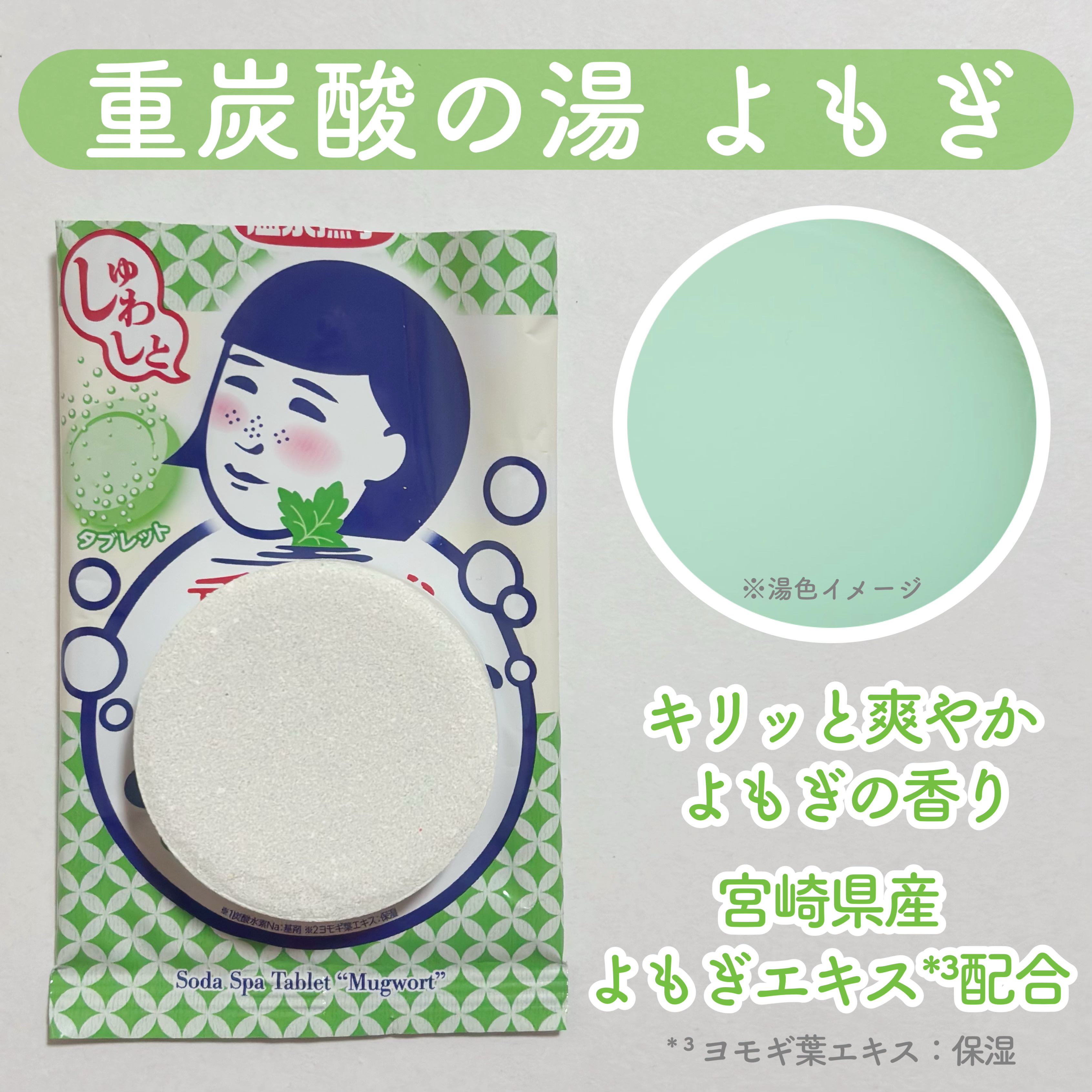 | 入浴剤ランキング第95位 | 入れた瞬間からシュワシュワ発泡して 爽やかなよもぎの香りが広がっていきます🌿 お湯色は明るい緑色 | 詳細を見る | |