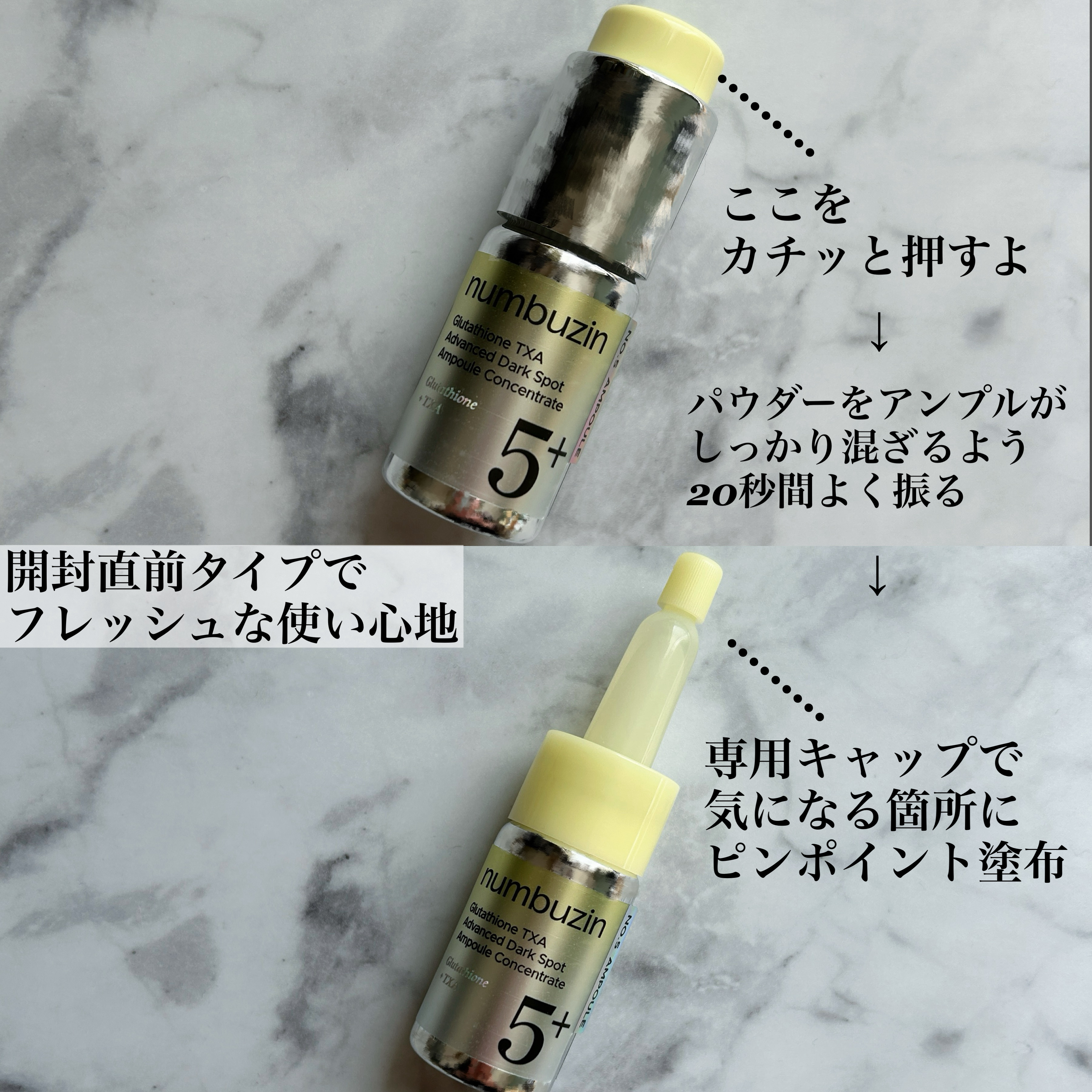 ▶︎numbuzin#PR\使用直前に混ぜて2週間集中ケア/✴︎白玉グルタチオン100×TXA10集中トーニング美容液✔︎ポイント・グルタチオン100%パウダー+トラネキサム酸10%の濃密処方・使用直前にカチッと混ぜてフレッシュな状態で透明感...
