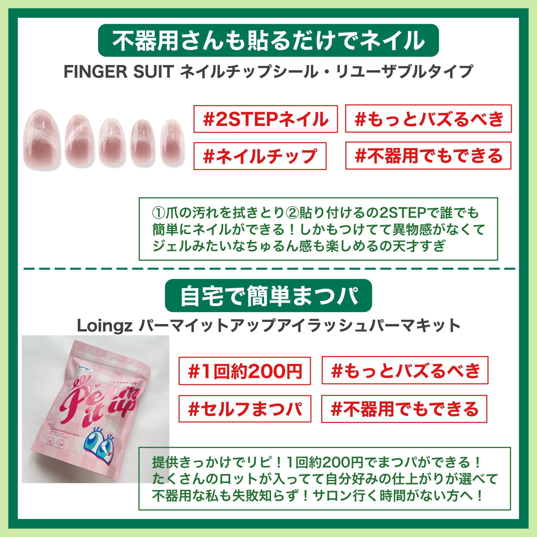 FINGER SUIT ネイルチップ(リユーザブルタイプ) | 1,958円 |