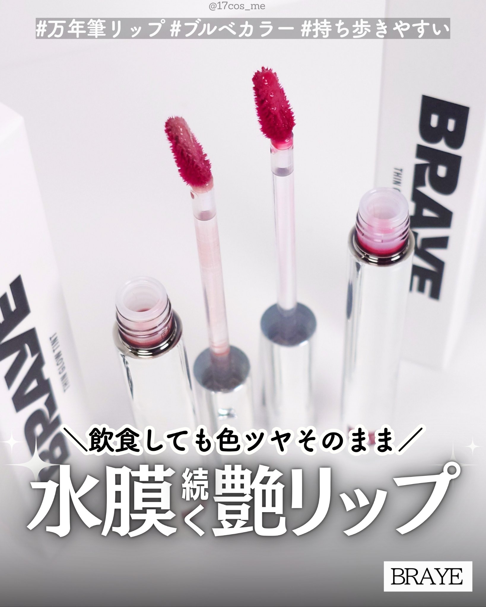 万年筆のようなお洒落なパケが目を引くコチラBRAYE(ブレイ)THINGLOWTINT【04キャリア】ブルベのMLBBカラーを少し濃くしたような、馴染みカラーで個人的にデイリーに使いやすい.ᐟ.ᐟ【09フェスティブ】パキッと華やかな青みレッド...