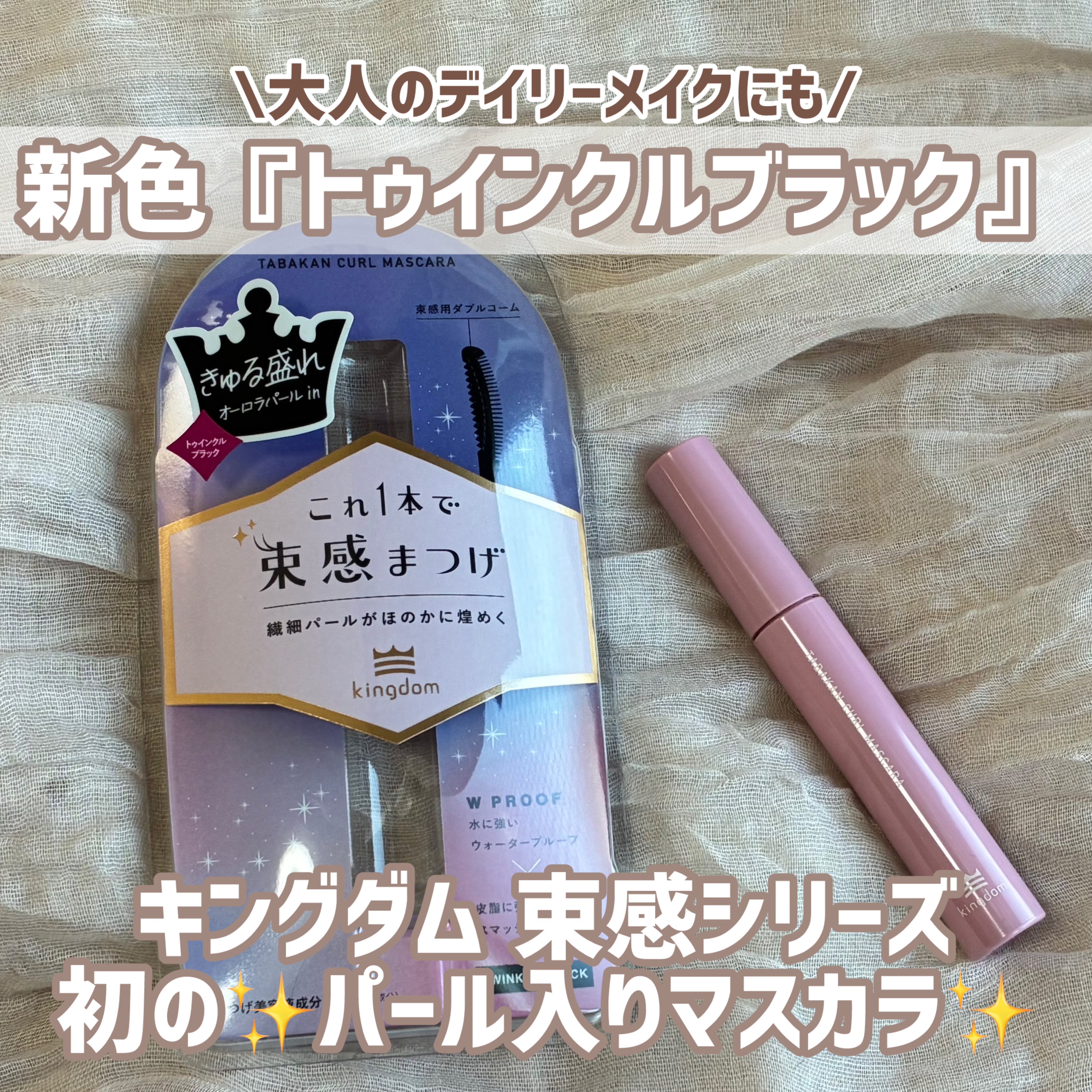 キングダム束感カールマスカラから新色トゥインクルブラックが発売するよ♡︎ᵎᵎᵎ透け感ある黒色×角度によって見え方が変わるオーロラパール入りでうるキラ束感まつげに⸝·⸝⋆꙳美容液成分配合なのも嬉しい🫶🏻️💓簡単に束感作れる相棒マスカラ。繊細...