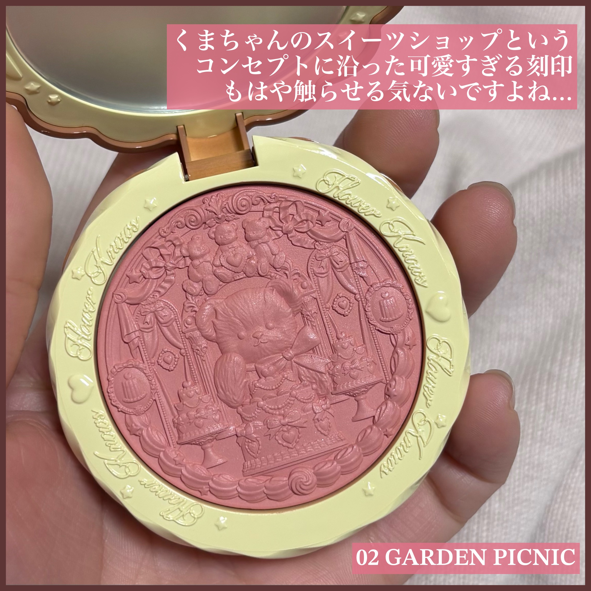 FlowerKnows02GardenPicnicを購入しました!!!😍何より本当にパケが可愛い😍横からみてもしっかりビスケット!!これにくまちゃんは反則なかわいさです!!02のカラーは、王道ピンク系ですが、はっきりとしたピンクというより、落...