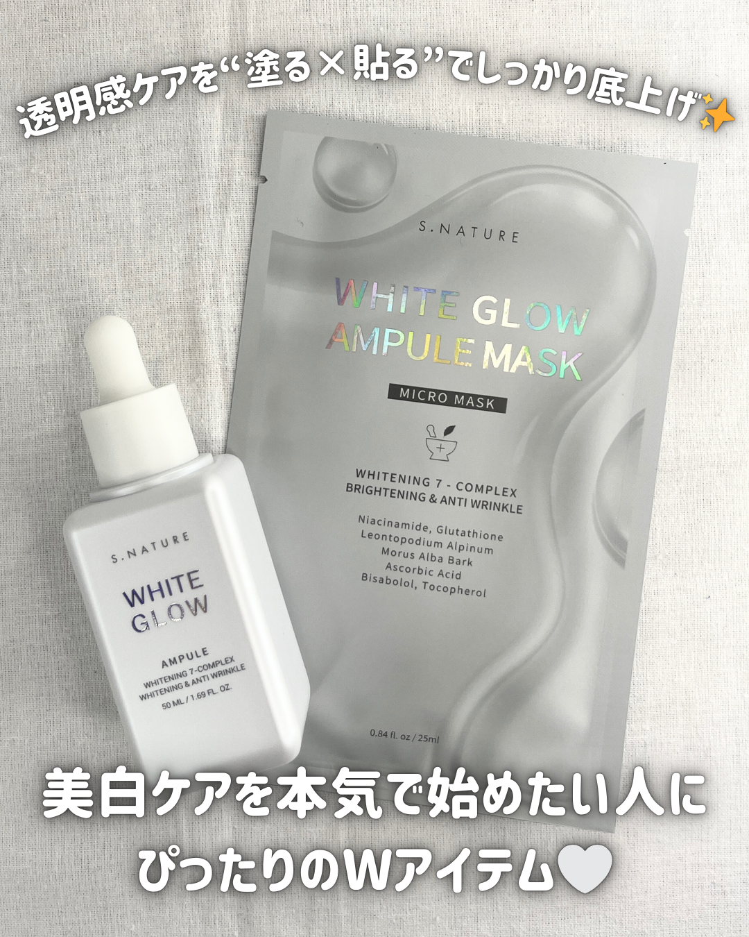 📣S.NATUREメガ割でお得にGET!今回、成分にこだわりのあるヴィーガンコスメブランドS.NATURE様より提供の✨WHITEGLOWAMPULEWHITEGLOWAMPULEMASKをモニターさせていただきました🤍なんと今、Qoo10の...