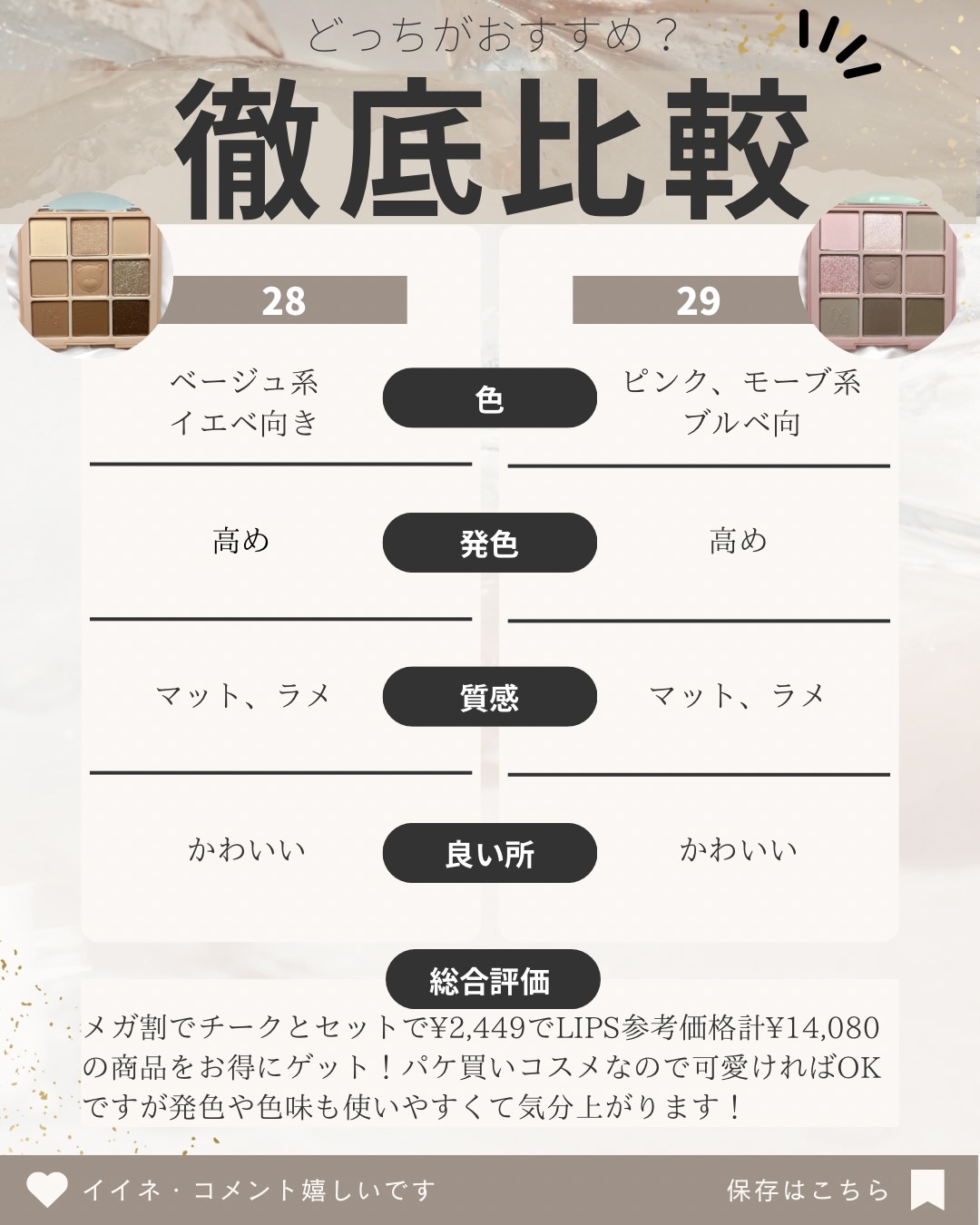 | アイシャドウパレットランキング第3位 | 粉質がふわっとなめらかになり発色もしっかりめになった! | 詳細を見る | |