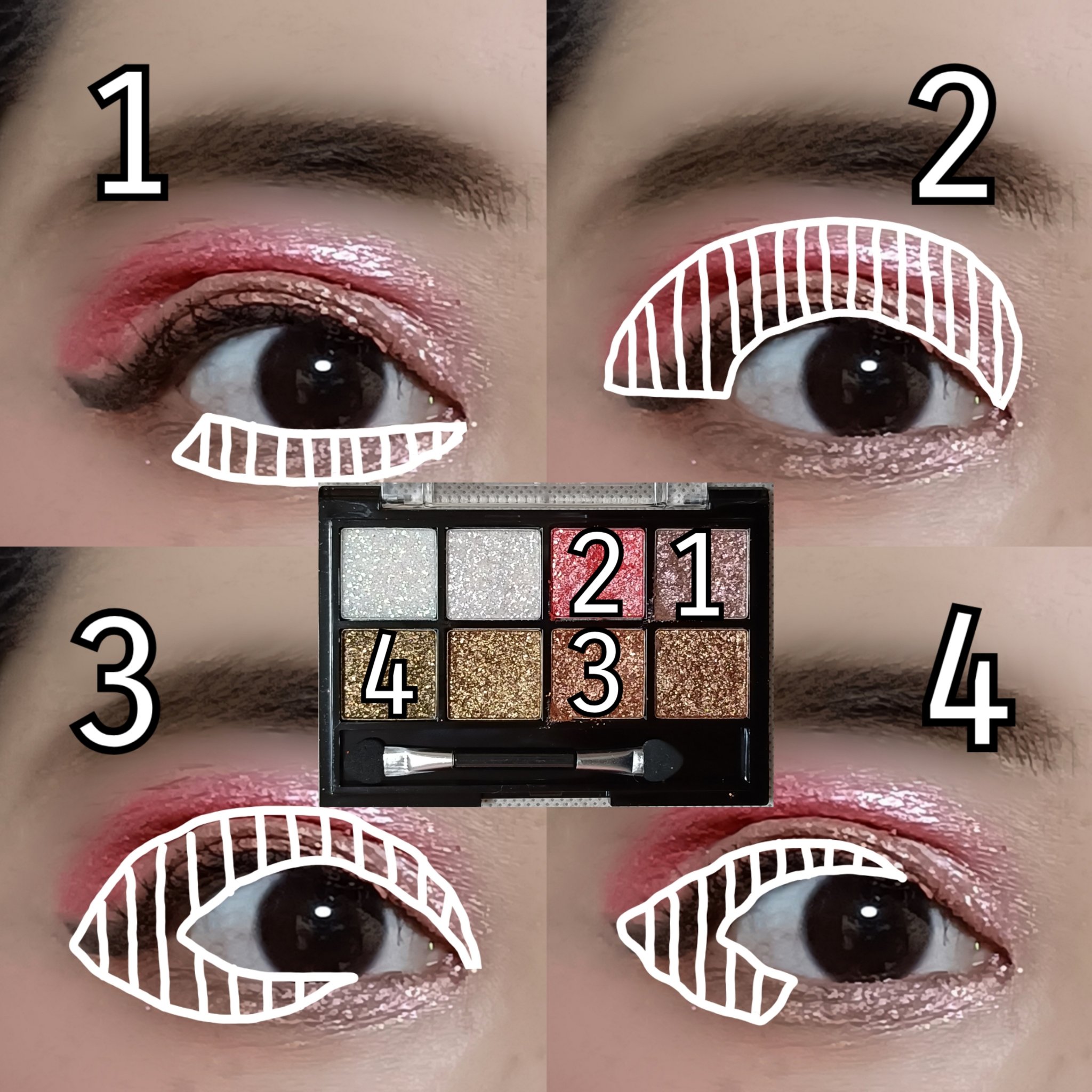 アイシャドウパレットは、URGLAM UR GLAMBLOOMING EYE COLOR PALETTE 02を、使用しました。 マスカラは、MAYBELLINE NEW YORK コロッサルボリュームエクスプレスを、まつ毛全体にまんべんなく塗ります。 リップは、wet 'n' wild MegaLast Lip Colorを、唇全体にまんべんなく塗ります。