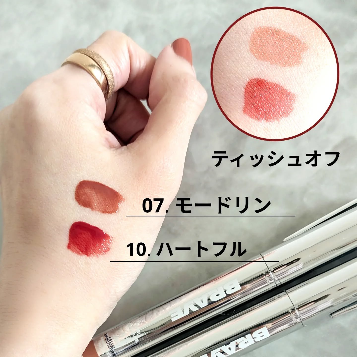 まるで万年筆な密着水感ティント🖋️ BRAYEのTHIN GLOW TINTを紹介します! 全10色展開のこちらのリップは軽くしっとりした塗り心地のティントです💋 万年筆のようなスリムなパケで塗り直し用に持ち歩いてもGOOD👍🏻