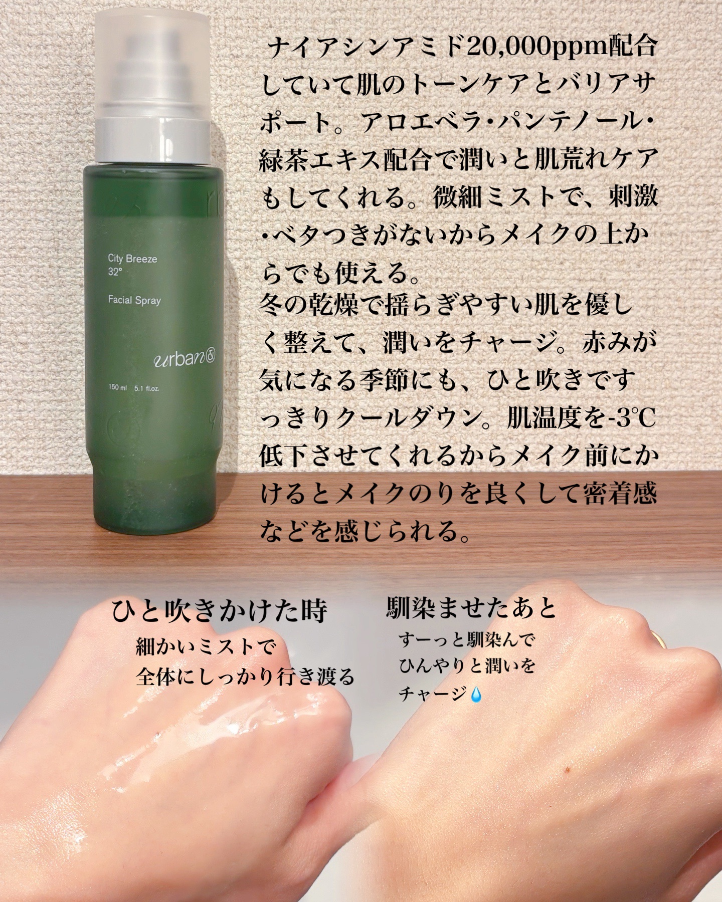 #PR@UrbanN_officialCityBreeze32゚FacialSpray(150ml)1回の使用で肌温度を−3°C低下させるクーリングミスト🩵「お肌が最も心地よく感じる温度は32°Cだということをご存知ですか?肌は31〜33°C...
