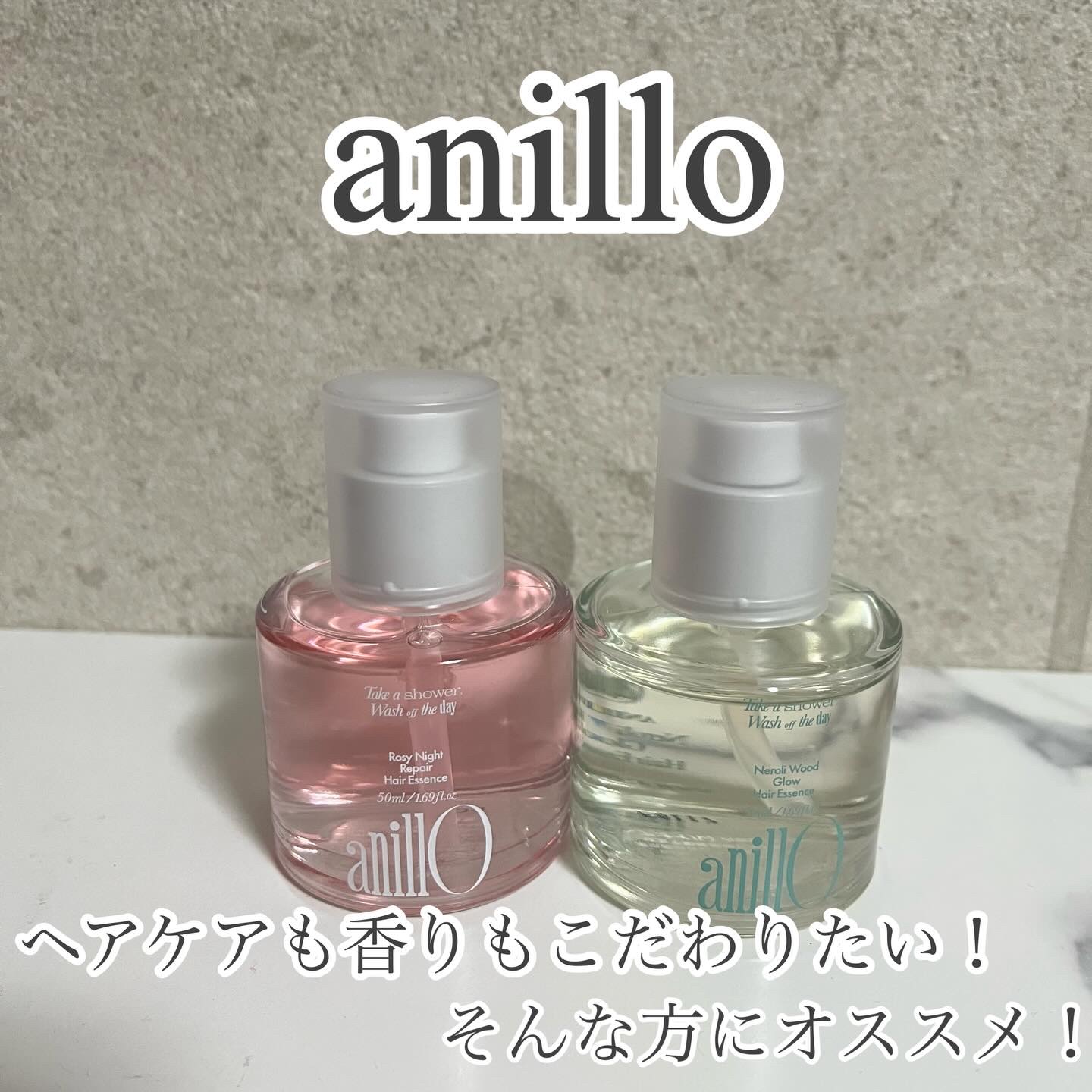香りまで“褒められる髪”にしたいならanilloが優勝🏆 軽いのにしっとりまとまってふんわり香りが続くヘアエッセンス♡💚ネロリウッド(軽やかツヤ系) ネロリ×ホワイトフラワーの上品な香り。 カラー後のパサつき髪にも◎❤️ロージーナイト(しっと...