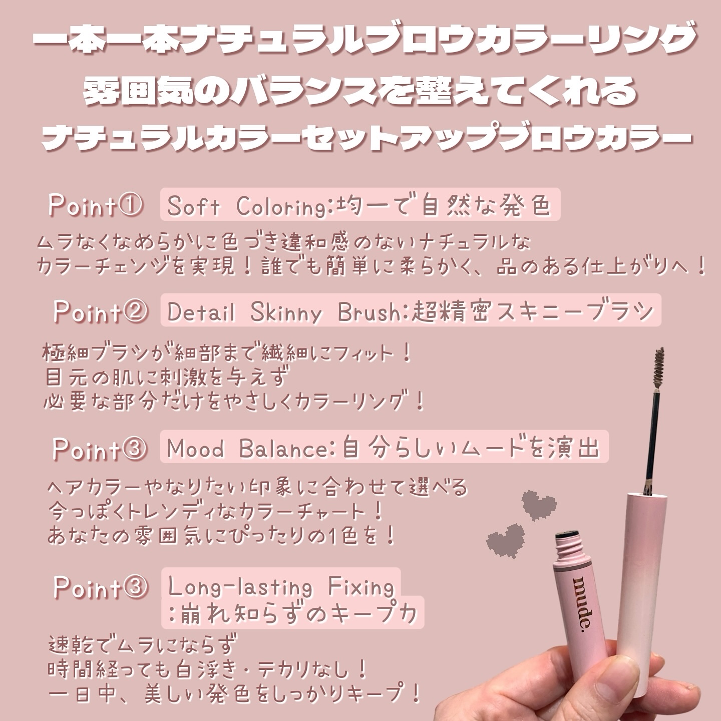 \mude×斎藤みらい様共同開発日本だけの特別なカラー/mude.インスパイアスキニーブロウカラP02ナッティーモーブ[日本限定色]眉毛1本1本を自然に染めたように違和感なくふわっとカラーチェンジ🤍細いスキニーブラシだから眉尻まで綺麗に塗れ...