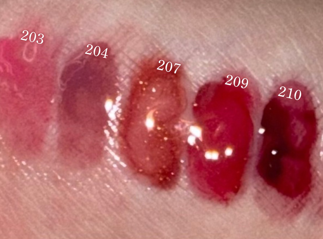 - <201 フェアリー> ダイマージリノール酸ジイソステアリル、ジフェニルシロキシフェニルトリメチコン、ビスジグリセリルポリアシルアジペート-2、水、ジフェニルジメチコン、水添ポリイソブテン、セチルPEG/PPG-10/1ジメチコン、ポリソルベート60、ペンチレングリコール、グリセリン、イソステアリン酸ポリグリセリル-4、フェノキシエタノール、1,2-ヘキサンジオール、セテアレス-20、酸化チタン (CI 77891)、(アクリル酸ヒドロキシエチル/アクリロイルジメチルタウリンNa)コポリマー、ステビオシド、スクワラン、香料、ジラウラミドグルタミドリシンNa、エチルヘキシルグリセリン、エチレンジアミンジコハク酸3Na、赤色227号 (CI 17200)、水酸化Al、黄色5号 (CI 15985)、ポリアクリル酸アンモニウム、イソステアリン酸ソルビタン、黄色4号 (CI 19140)、BG、赤色223号 (CI 45410)、青色1号 (CI 42090)、アラントイン、パンテノール、ツボクサエキス、ヒアルロン酸、加水分解ヒアルロン酸、ヒアルロン酸Na <203 バブリー> ダイマージリノール酸ジイソステアリル、ジフェニルシロキシフェニルトリメチコン、ビスジグリセリルポリアシルアジペート-2、水、ジフェニルジメチコン、水添ポリイソブテン、セチルPEG/PPG-10/1ジメチコン、ポリソルベート60、ペンチレングリコール、グリセリン、イソステアリン酸ポリグリセリル-4、フェノキシエタノール、1,2-ヘキサンジオール、セテアレス-20、(アクリル酸ヒドロキシエチル/アクリロイルジメチルタウリンNa)コポリマー、ステビオシド、酸化チタン (CI 77891)、スクワラン、香料、ジラウラミドグルタミドリシンNa、エチルヘキシルグリセリン、赤色227号 (CI 17200)、エチレンジアミンジコハク酸3Na、黄色5号 (CI 15985)、イソステアリン酸ソルビタン、水酸化Al、ポリアクリル酸アンモニウム、黄色4号 (CI 19140)、BG、青色1号 (CI 42090)、アラントイン、パンテノール、ツボクサエキス、ヒアルロン酸、加水分解ヒアルロン酸、ヒアルロン酸Na <204 レア> ダイマージリノール酸ジイソステアリル、ジフェニルシロキシフェニルトリメチコン、ビスジグリセリルポリアシルアジペート-2、水、ジフェニルジメチコン、水添ポリイソブテン、セチルPEG/PPG-10/1ジメチコン、ポリソルベート60、ペンチレングリコール、グリセリン、イソステアリン酸ポリグリセリル-4、フェノキシエタノール、1,2-ヘキサンジオール、セテアレス-20、(アクリル酸ヒドロキシエチル/アクリロイルジメチルタウリンNa)コポリマー、酸化チタン (CI 77891)、ステビオシド、スクワラン、香料、ジラウラミドグルタミドリシンNa、エチルヘキシルグリセリン、赤色227号 (CI 17200)、黄色5号 (CI 15985)、エチレンジアミンジコハク酸3Na、イソステアリン酸ソルビタン、水酸化Al、ポリアクリル酸アンモニウム、黄色4号 (CI 19140)、青色1号 (CI 42090)、BG、アラントイン、パンテノール、ツボクサエキス、ヒアルロン酸、加水分解ヒアルロン酸、ヒアルロン酸Na <205 ハニーデュー> ダイマージリノール酸ジイソステアリル、ジフェニルシロキシフェニルトリメチコン、ビスジグリセリルポリアシルアジペート-2、水、ジフェニルジメチコン、水添ポリイソブテン、セチルPEG/PPG-10/1ジメチコン、ポリソルベート60、ペンチレングリコール、グリセリン、イソステアリン酸ポリグリセリル-4、フェノキシエタノール、1,2-ヘキサンジオール、セテアレス-20、(アクリル酸ヒドロキシエチル/アクリロイルジメチルタウリンNa)コポリマー、酸化チタン (CI 77891)、ステビオシド、スクワラン、香料、ジラウラミドグルタミドリシンNa、エチルヘキシルグリセリン、赤色227号 (CI 17200)、黄色5号 (CI 15985)、エチレンジアミンジコハク酸3Na、イソステアリン酸ソルビタン、水酸化Al、ポリアクリル酸アンモニウム、黄色4号 (CI 19140)、青色1号 (CI 42090)、BG、アラントイン、パンテノール、ツボクサエキス、ヒアルロン酸、加水分解ヒアルロン酸、ヒアルロン酸Na <206 トフィー> ダイマージリノール酸ジイソステアリル、ジフェニルシロキシフェニルトリメチコン、ビスジグリセリルポリアシルアジペート-2、水、ジフェニルジメチコン、水添ポリイソブテン、セチルPEG/PPG-10/1ジメチコン、ポリソルベート60、ペンチレングリコール、グリセリン、イソステアリン酸ポリグリセリル-4、フェノキシエタノール、1,2-ヘキサンジオール、セテアレス-20、(アクリル酸ヒドロキシエチル/アクリロイルジメチルタウリンNa)コポリマー、ステビオシド、スクワラン、香料、ジラウラミドグルタミドリシンNa、酸化チタン (CI 77891)、エチルヘキシルグリセリン、黄色5号 (CI 15985)、エチレンジアミンジコハク酸3Na、黄色4号 (CI 19140)、赤色227号 (CI 17200)、イソステアリン酸ソルビタン、赤色223号 (CI 45410)、青色1号 (CI 42090)、水酸化Al、ポリアクリル酸アンモニウム、BG、アラントイン、パンテノール、ツボクサエキス、ヒアルロン酸、加水分解ヒアルロン酸、ヒアルロン酸Na <207 フレイム> ダイマージリノール酸ジイソステアリル、ジフェニルシロ