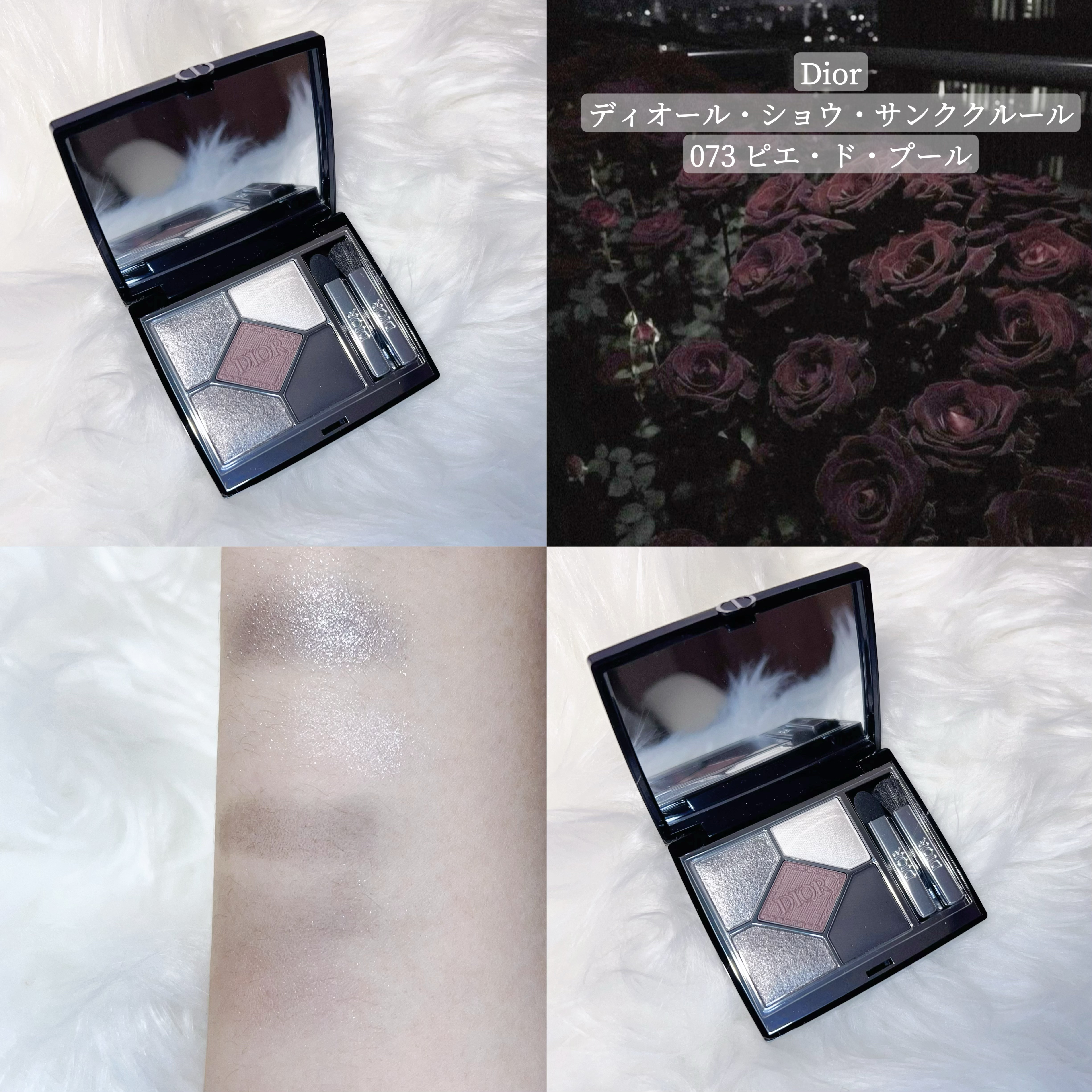 スモーキーアイシャドウディオールショウサンククルール073見た目はブラックやシルバーぎっしりで、使いづらそうですが、真ん中や右上が発色控えめなので、他三色とのバランスがとりやすいです✨写真のメイクは、目の際にブラック、目尻と目頭に真ん中のくす...
