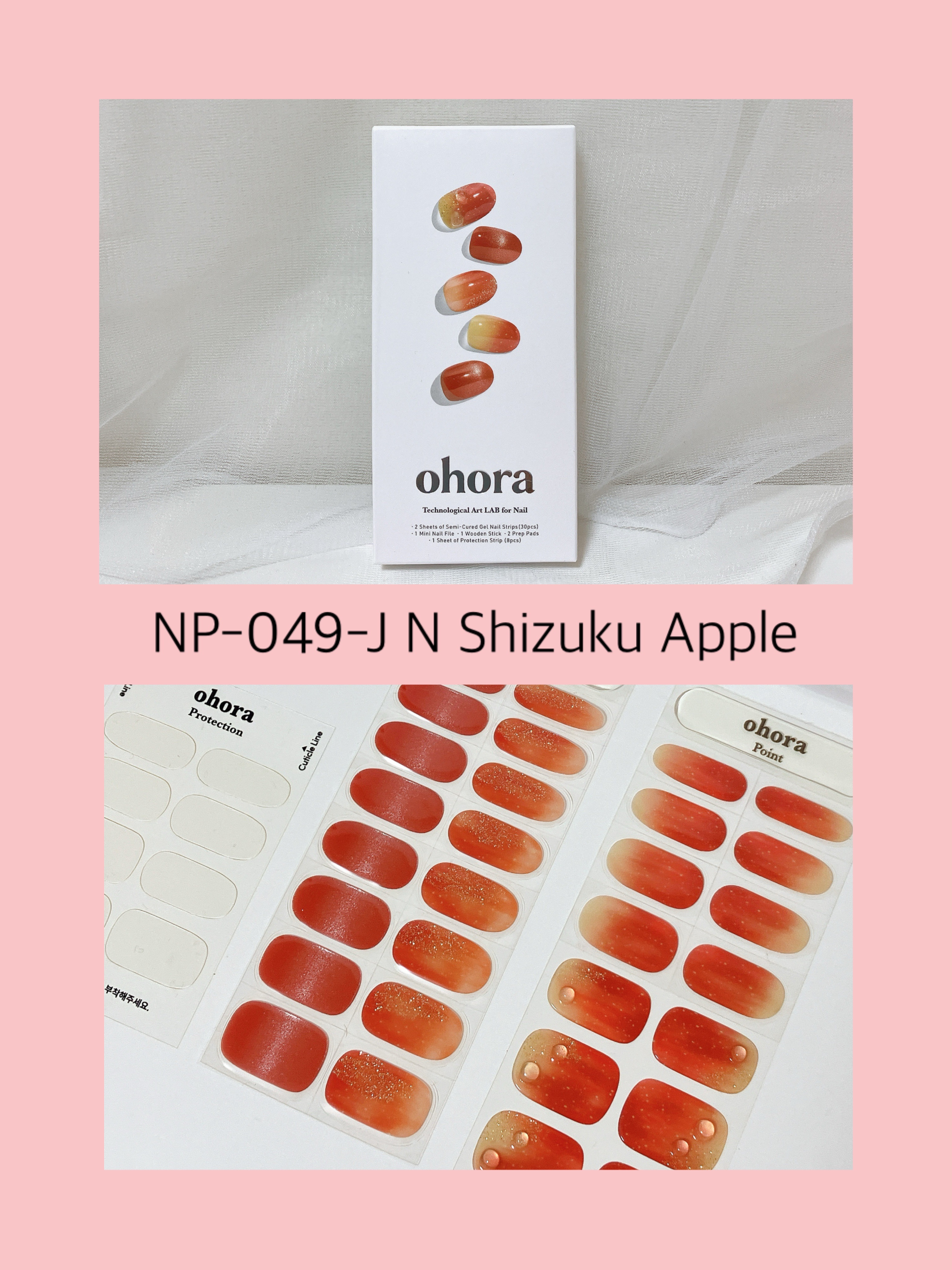 💅秋の指先にきらめきを✨貼るだけ!本格ジェルネイル🍎ohoraのジェルネイルシールを試してみたよー!秋にぴったりの、甘酸っぱいりんごのようなデザイン🍎今回試したのはNP-049-JNShizukuAppleみずみずしいツヤがあふれる透明感のあ...
