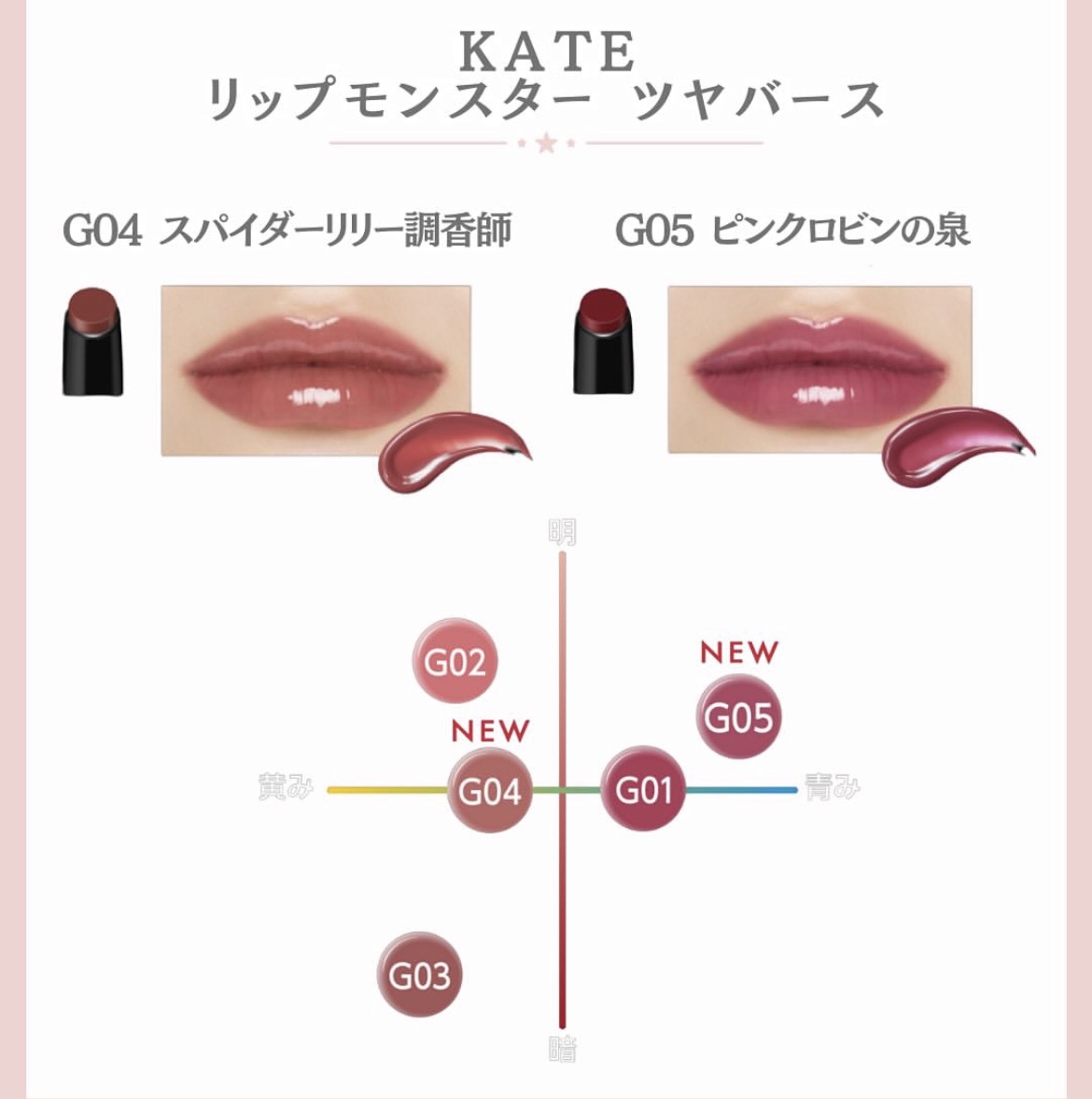 - <01 欲望の塊> テトライソステアリン酸ジペンタエリスリチル、トリ(カプリル酸/カプリン酸)グリセリル、オクチルドデカノール、ラウロイルグルタミン酸ジ(フィトステリル/オクチルドデシル)、ビスアルキル(C16-18)グリセリルウンデシルジメチコン、イソノナン酸イソトリデシル、水添ポリイソブテン、ラウロイルグルタミン酸ジ(オクチルドデシル/フィトステリル/ベヘニル)、パラフィン、合成ワックス、ダイマージリノール酸(フィトステリル/イソステアリル/セチル/ステアリル/ベヘニル)、マイクロクリスタリンワックス、水添マイクロクリスタリンワックス、ヒドロキシステアリン酸エチルヘキシル、トコフェロール、ホホバ種子油、オリーブ果実油、アーモンド油、(エチレン/プロピレン)コポリマー、ポリエチレン、ジメチコン、(+/-)(チタン/酸化チタン)焼結物、マイカ、ラウロイルアスパラギン酸Na、ラウロイルリシン、塩化亜鉛、酸化チタン、酸化鉄、水酸化Al、硫酸Ba、トリイソステアリン酸イソプロピルチタン、酸化スズ、ホウケイ酸(Ca/Al)、合成フルオロフロゴパイト、黄4、黄5、赤104(1)、赤201、赤202 <02 ピンクバナナ> テトライソステアリン酸ジペンタエリスリチル、トリ(カプリル酸/カプリン酸)グリセリル、オクチルドデカノール、ラウロイルグルタミン酸ジ(フィトステリル/オクチルドデシル)、ビスアルキル(C16-18)グリセリルウンデシルジメチコン、イソノナン酸イソトリデシル、水添ポリイソブテン、ラウロイルグルタミン酸ジ(オクチルドデシル/フィトステリル/ベヘニル)、パラフィン、合成ワックス、ダイマージリノール酸(フィトステリル/イソステアリル/セチル/ステアリル/ベヘニル)、マイクロクリスタリンワックス、水添マイクロクリスタリンワックス、ヒドロキシステアリン酸エチルヘキシル、トコフェロール、ホホバ種子油、オリーブ果実油、アーモンド油、(エチレン/プロピレン)コポリマー、ポリエチレン、ジメチコン、(+/-)(チタン/酸化チタン)焼結物、マイカ、ラウロイルアスパラギン酸Na、ラウロイルリシン、塩化亜鉛、酸化チタン、酸化鉄、水酸化Al、硫酸Ba、トリイソステアリン酸イソプロピルチタン、酸化スズ、ホウケイ酸(Ca/Al)、合成フルオロフロゴパイト、黄4、黄5、赤104(1)、赤201、赤202 <03 陽炎> テトライソステアリン酸ジペンタエリスリチル、トリ(カプリル酸/カプリン酸)グリセリル、オクチルドデカノール、ラウロイルグルタミン酸ジ(フィトステリル/オクチルドデシル)、ビスアルキル(C16-18)グリセリルウンデシルジメチコン、イソノナン酸イソトリデシル、水添ポリイソブテン、ラウロイルグルタミン酸ジ(オクチルドデシル/フィトステリル/ベヘニル)、パラフィン、合成ワックス、ダイマージリノール酸(フィトステリル/イソステアリル/セチル/ステアリル/ベヘニル)、マイクロクリスタリンワックス、水添マイクロクリスタリンワックス、ヒドロキシステアリン酸エチルヘキシル、トコフェロール、ホホバ種子油、オリーブ果実油、アーモンド油、(エチレン/プロピレン)コポリマー、ポリエチレン、ジメチコン、(+/-)(チタン/酸化チタン)焼結物、マイカ、ラウロイルアスパラギン酸Na、ラウロイルリシン、塩化亜鉛、酸化チタン、酸化鉄、水酸化Al、硫酸Ba、トリイソステアリン酸イソプロピルチタン、酸化スズ、ホウケイ酸(Ca/Al)、合成フルオロフロゴパイト、黄4、黄5、赤104(1)、赤201、赤202 <04 パンプキンワイン> テトライソステアリン酸ジペンタエリスリチル、トリ(カプリル酸/カプリン酸)グリセリル、オクチルドデカノール、ラウロイルグルタミン酸ジ(フィトステリル/オクチルドデシル)、ビスアルキル(C16-18)グリセリルウンデシルジメチコン、イソノナン酸イソトリデシル、水添ポリイソブテン、ラウロイルグルタミン酸ジ(オクチルドデシル/フィトステリル/ベヘニル)、パラフィン、合成ワックス、ダイマージリノール酸(フィトステリル/イソステアリル/セチル/ステアリル/ベヘニル)、マイクロクリスタリンワックス、水添マイクロクリスタリンワックス、ヒドロキシステアリン酸エチルヘキシル、トコフェロール、ホホバ種子油、オリーブ果実油、アーモンド油、(エチレン/プロピレン)コポリマー、ポリエチレン、ジメチコン、(+/-)(チタン/酸化チタン)焼結物、マイカ、ラウロイルアスパラギン酸Na、ラウロイルリシン、塩化亜鉛、酸化チタン、酸化鉄、水酸化Al、硫酸Ba、トリイソステアリン酸イソプロピルチタン、酸化スズ、ホウケイ酸(Ca/Al)、合成フルオロフロゴパイト、黄4、黄5、赤104(1)、赤201、赤202 <05 ダークフィグ> テトライソステアリン酸ジペンタエリスリチル、トリ(カプリル酸/カプリン酸)グリセリル、オクチルドデカノール、ラウロイルグルタミン酸ジ(フィトステリル/オクチルドデシル)、ビスアルキル(C16-18)グリセリルウンデシルジメチコン、イソノナン酸イソトリデシル、水添ポリイソブテン、ラウロイルグルタミン酸ジ(オクチルドデシル/フィトステリル/ベヘニル)、