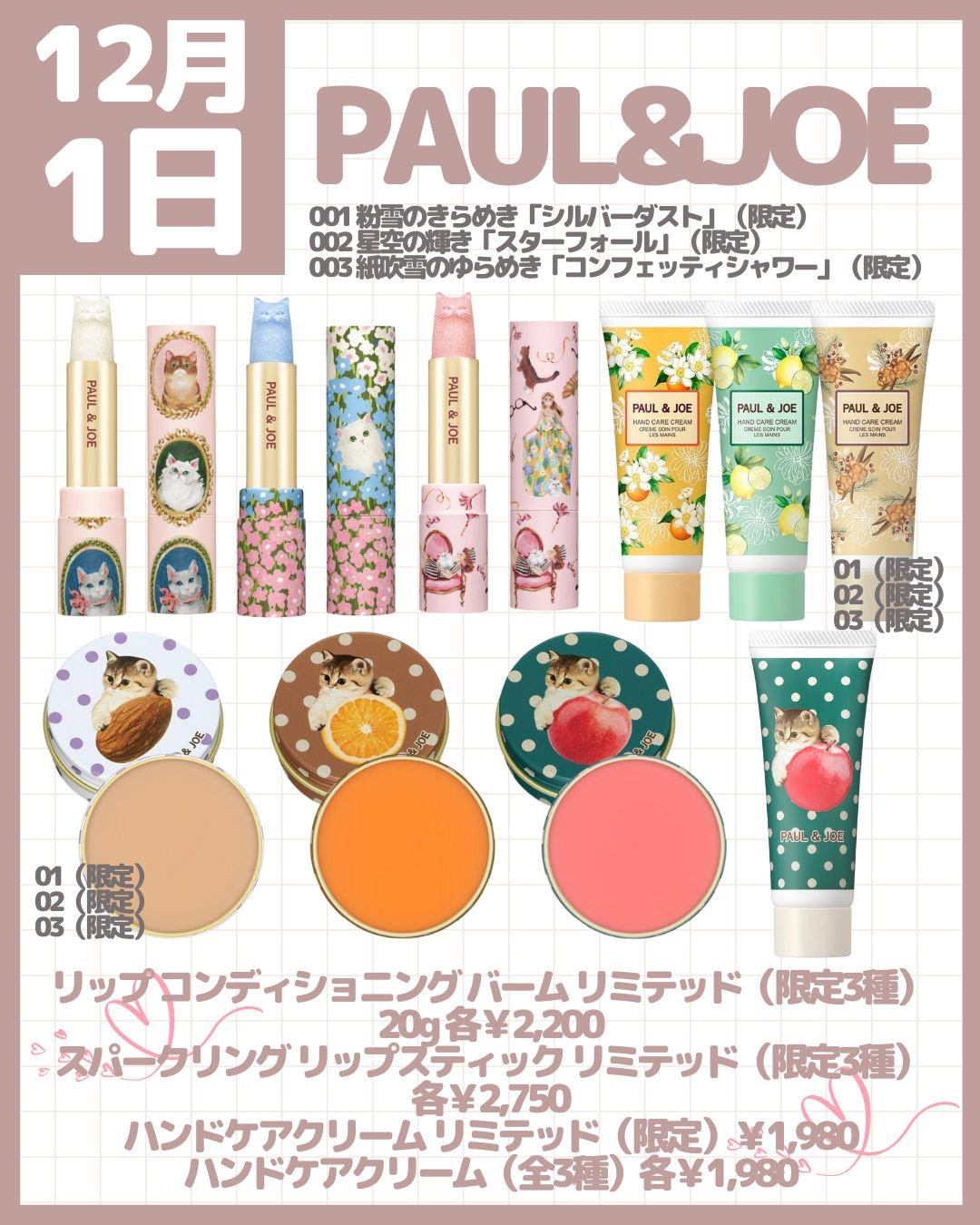 .PAUL&JOEBEAUTEからクリスマスコスメが登場👏12月1日発売❤11月17日予約開始❤・ポール&ジョーハンドケアクリームリミテッド・ポール&ジョースパークリングリップスティックリミテッド・ポール&ジョーリップコンディショニングバーム...