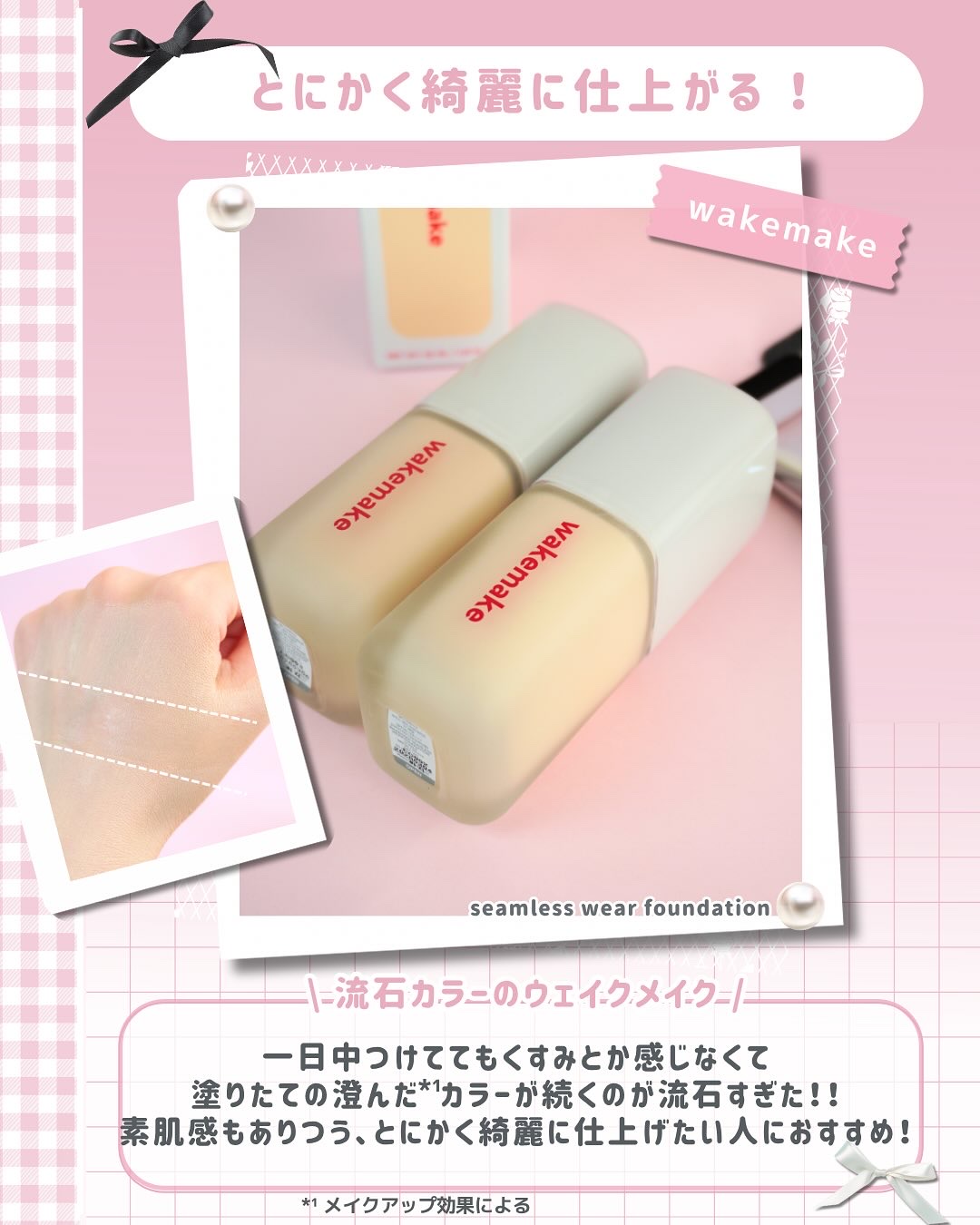 wakemakeシームレスウェアファンデーション21Nバニラスパチュラワイドファンデーションブラシ薄付きで、素肌みたいな仕上がりが叶うファンデ✨乾燥しやすい秋冬でもピタッと密着して、時間がたってもヨレにくい印象です!軽いのにカバー力があって、...