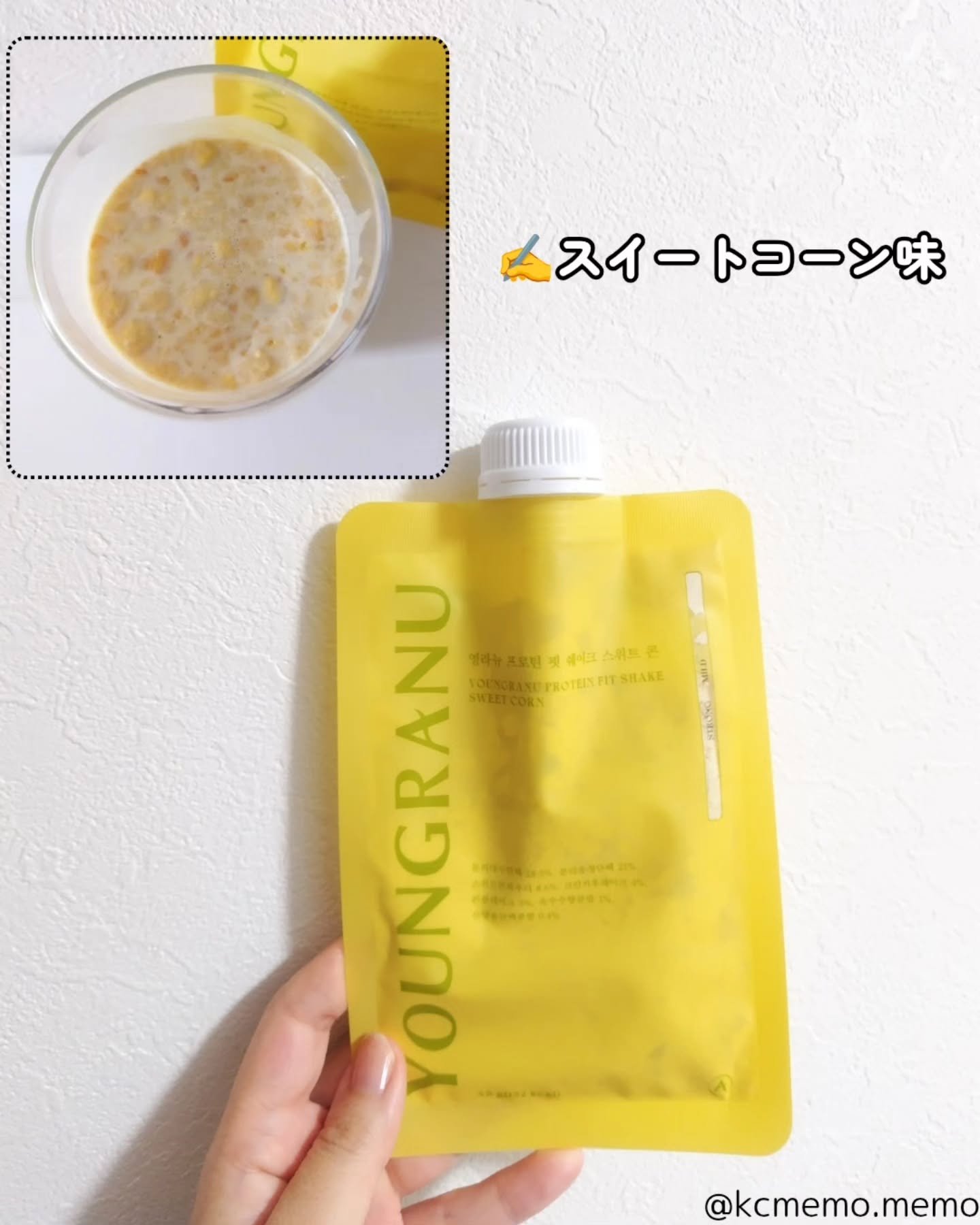 ・ YOUNGRANUプロテインフィットシェイクあずきピンススイートコーンヨモギラテピスタチオ穀物黒ゴマココアの全6種類1包約20gのタンパク質とたくさんの栄養素を補ってくれる珍しいフレーバーが揃ってるのも置き換えダイエットにもぴったりな満足...