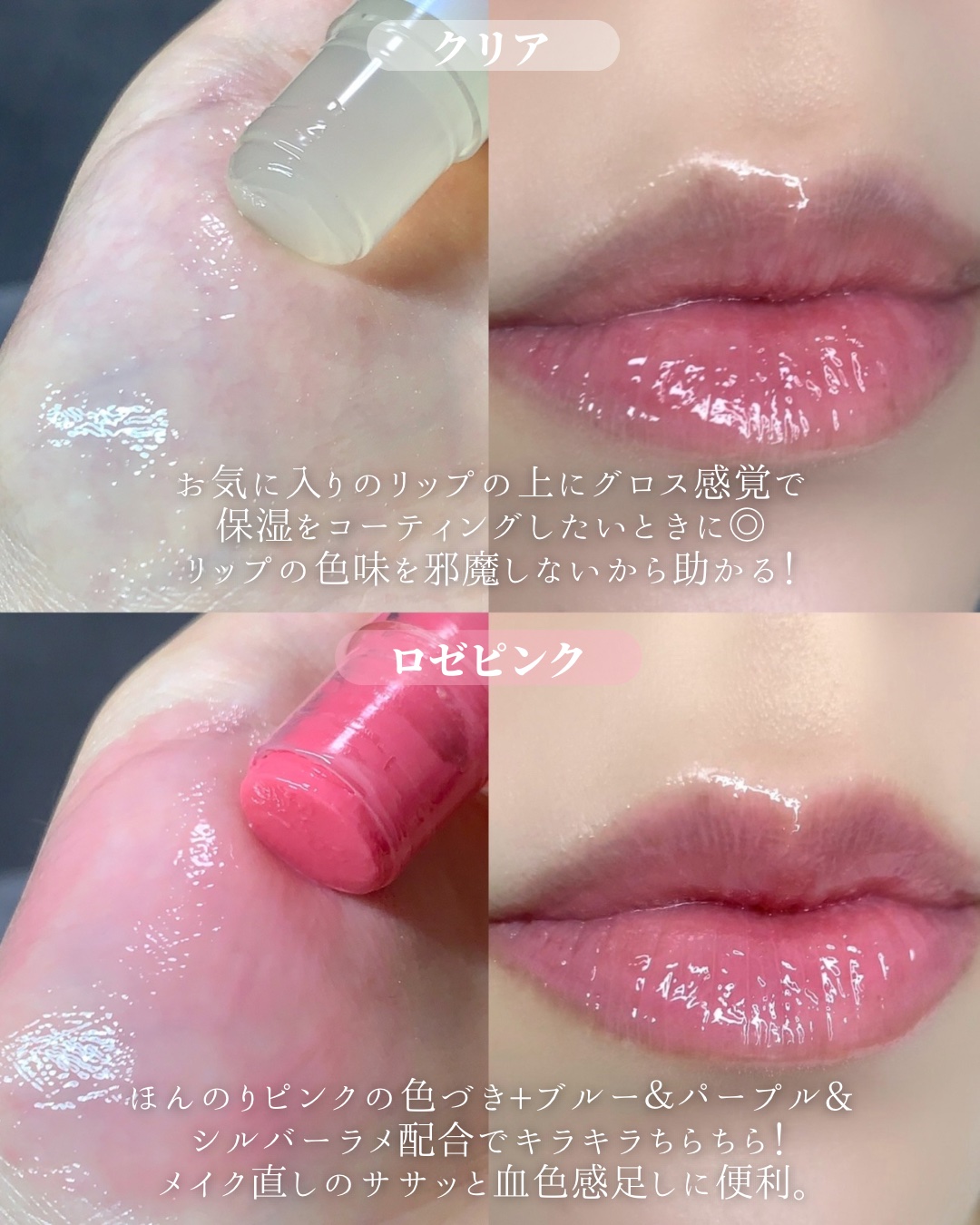 今回の新色がブルベ激アツな件🔥💓売り場が可愛過ぎて買う予定全くなかったのに吸い込まれてった(笑)テスターしたらマジで可愛くて即決だった。とりあえず2色厳選して大満足❤️やっぱこのとろ〜り感好きだわ〜!🤭唇の皮剥けとか乾燥すごいタイプなんだけ...