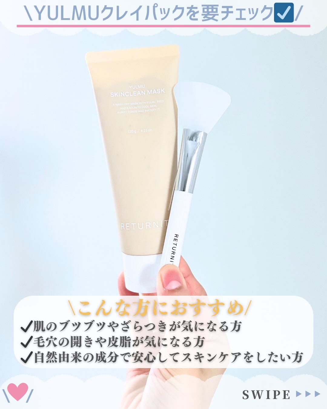 🎀RETURNITY🎀💎YULMUスキンクリーンパック120gこれ1つでお肌のブツブツ一掃❣毛穴が引き締まります🩷自然由来の成分で安心して使えます✨クリームたっぷり配合した乾かないクレイパック🧏🏻♀️🤍@returnity_jp#PR#リタ...