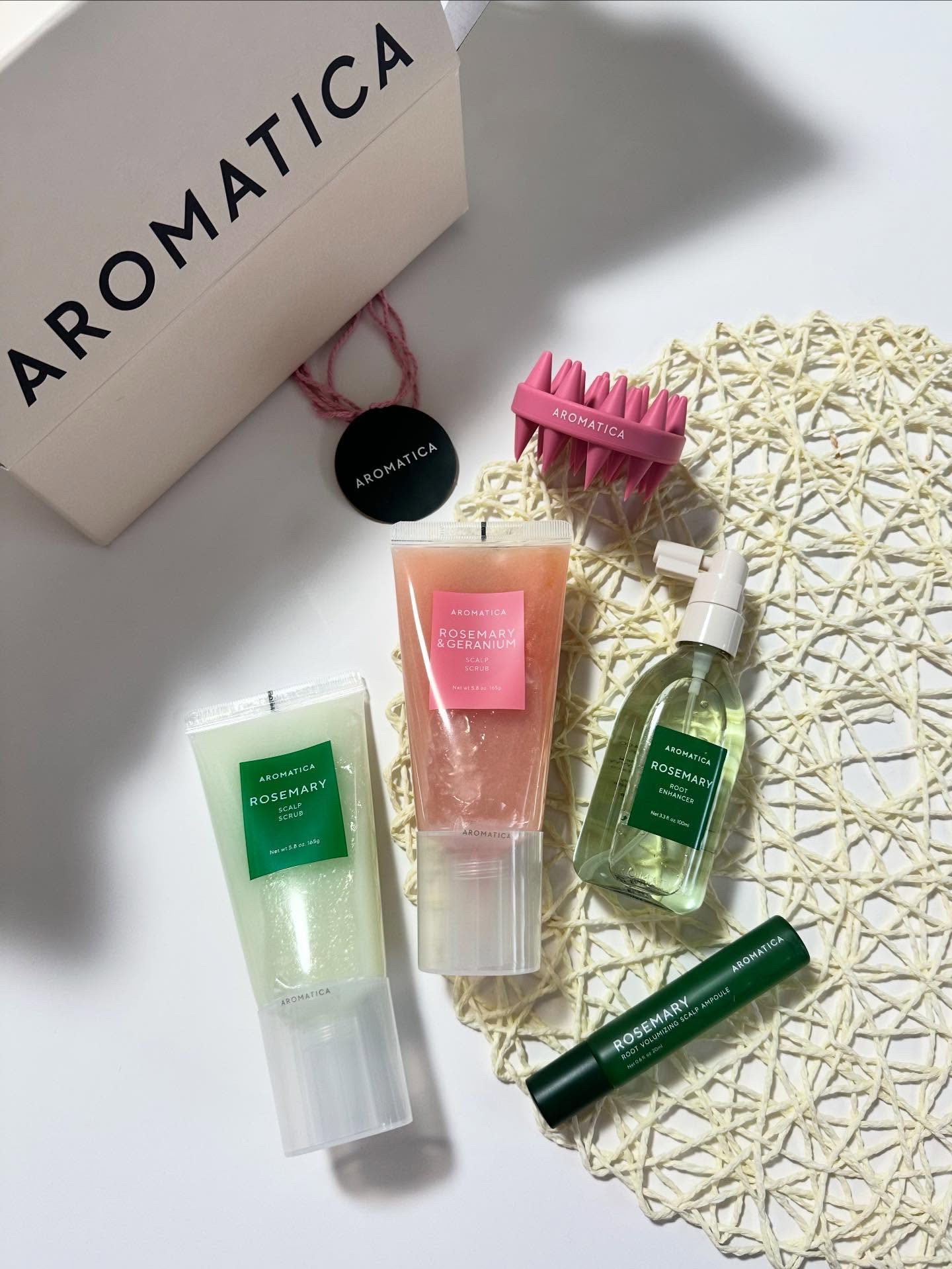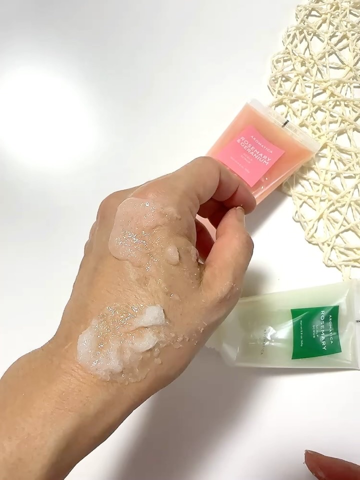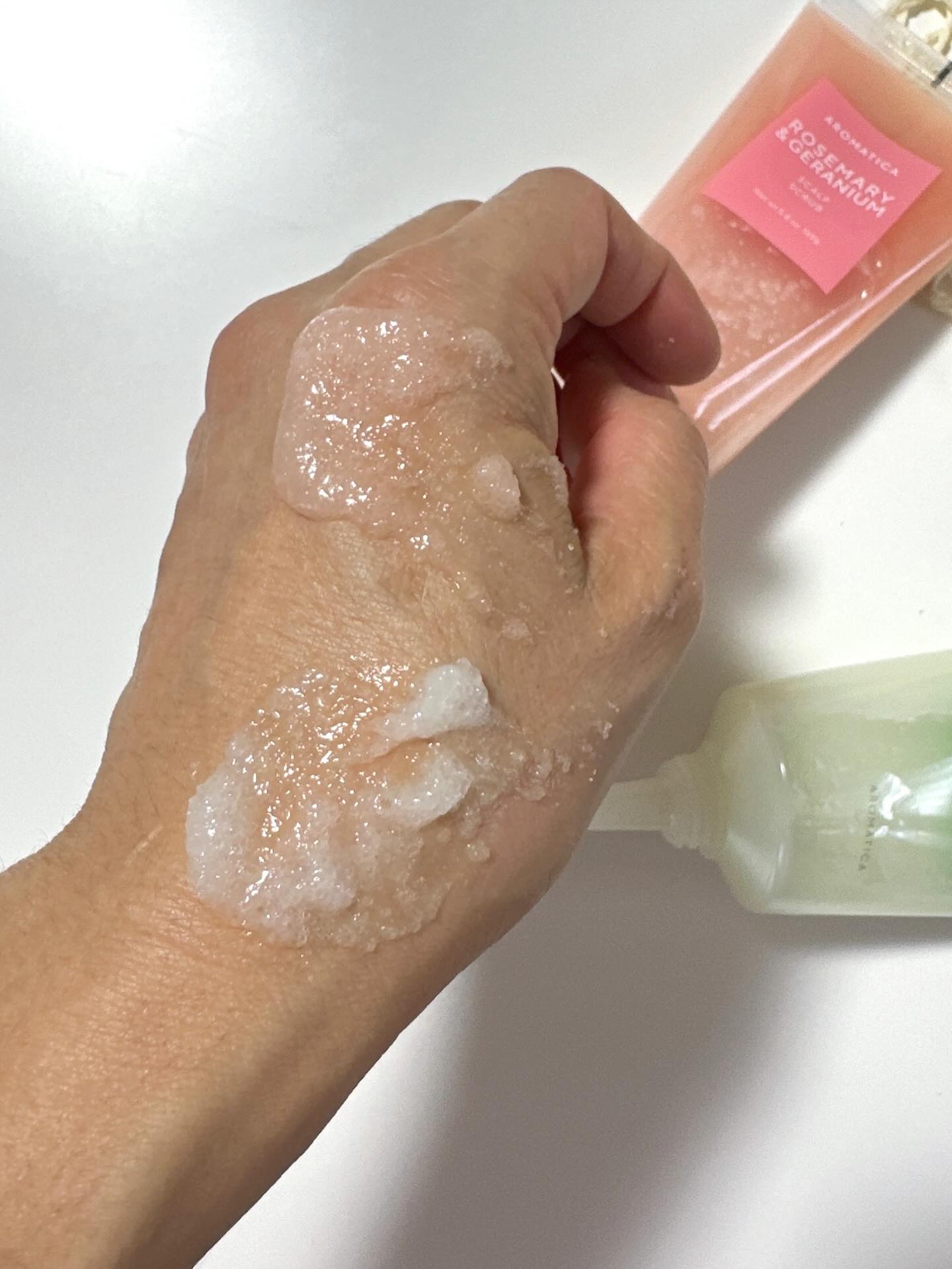 #PRアロマティカ@aromatica.jpローズマリー&ゼラニウムスカルプスクラブ\頭皮の角質ケア、してる?/今話題の頭皮ケアスクラブ🌸既存の緑のローズマリーと比べてスクラブの粒が大きく、低刺激になり敏感肌の人でも使いやすい◎これを使った後...