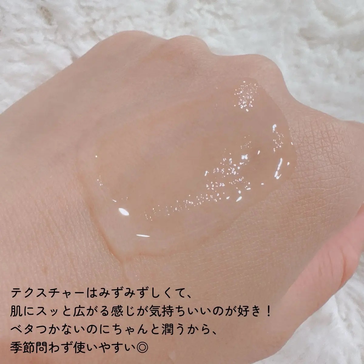 | 少しとろみがありつつもサラッとしていて伸びが良く、塗り広げるとあっという間に肌に浸透♪ | 詳細を見る | ||
