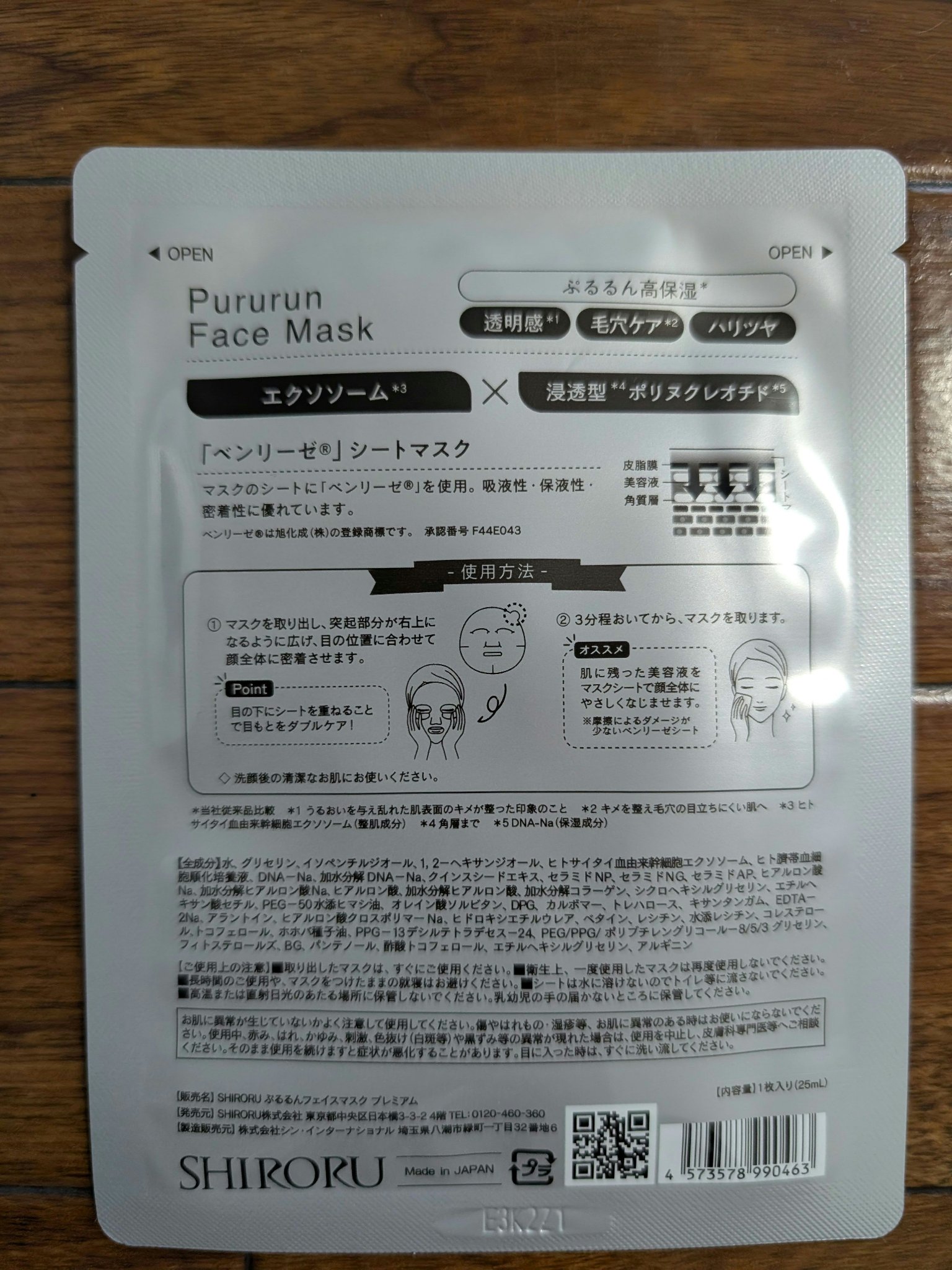 商品詳細情報SHIRORU ぷるるんフェイスマスク プレミアム