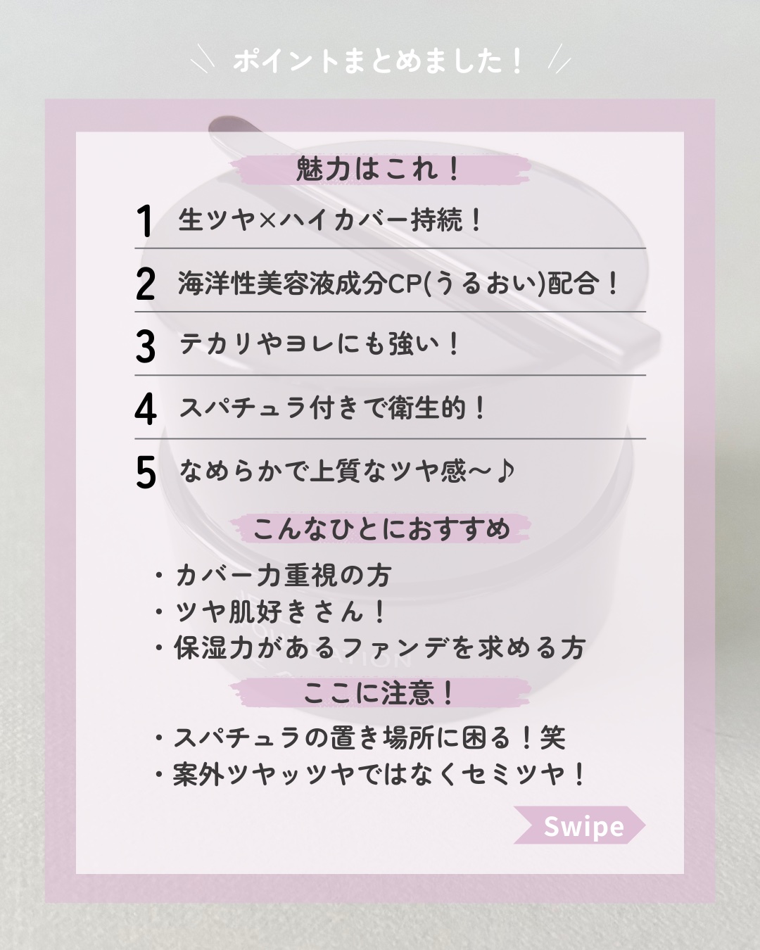| ファンデーションランキング第57位 | カバー力があり伸びもいいから少量でOK🙆♀️ほどよいツヤ感としっかりしたカバー力なのに塗ったあとも軽やか。 | 詳細を見る |