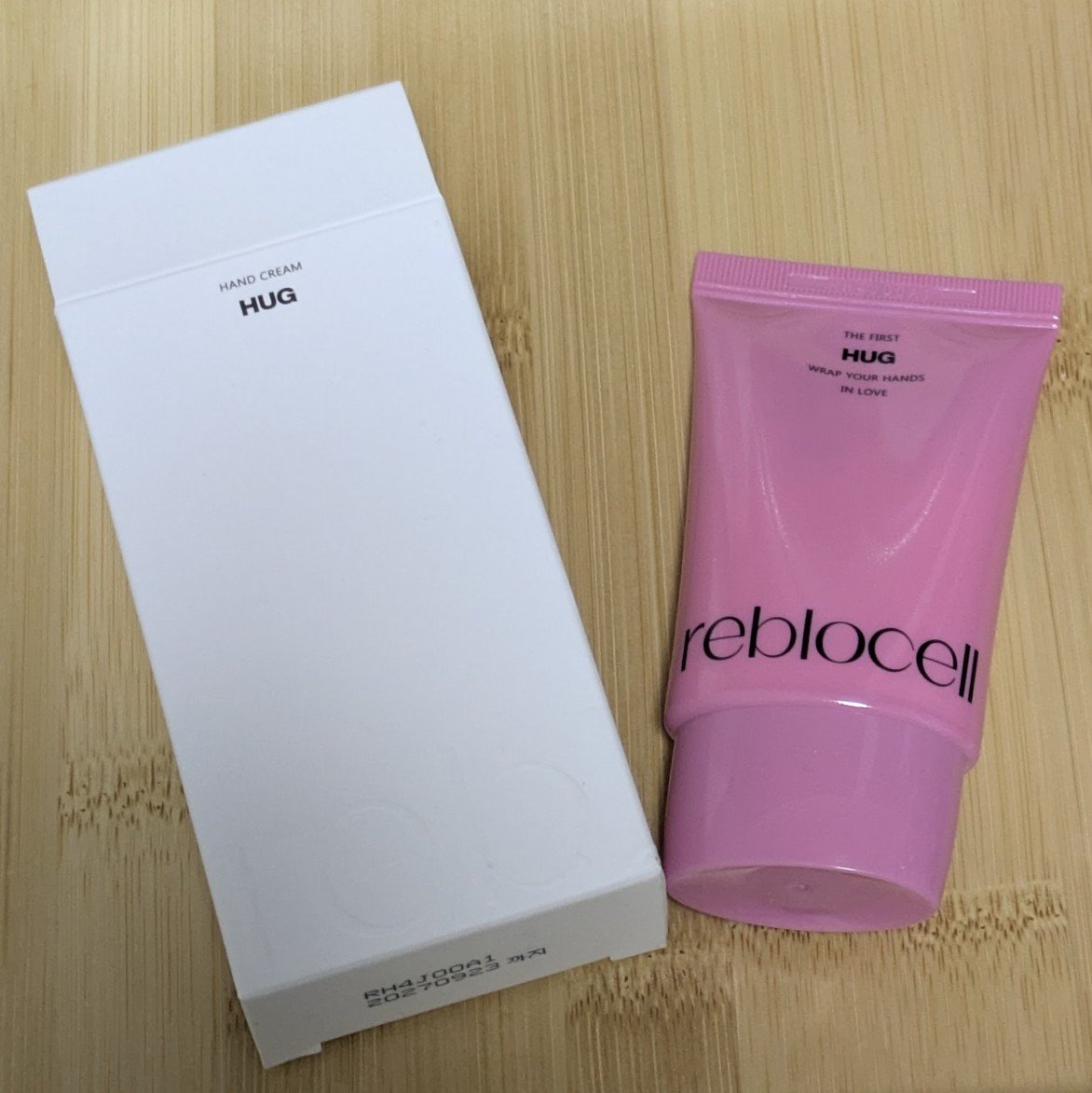 reblocellHUGハンドクリームピンクのパッケージが可愛い🩷ハーブとシトラスの爽やかさとムスクやアンバーの高級感のある香り🌿のびが良くて、なじみがはやい!ベタつかなくて、しっとりとする付け心地💗ベタベタしないので、つけた後にスマホやPC...