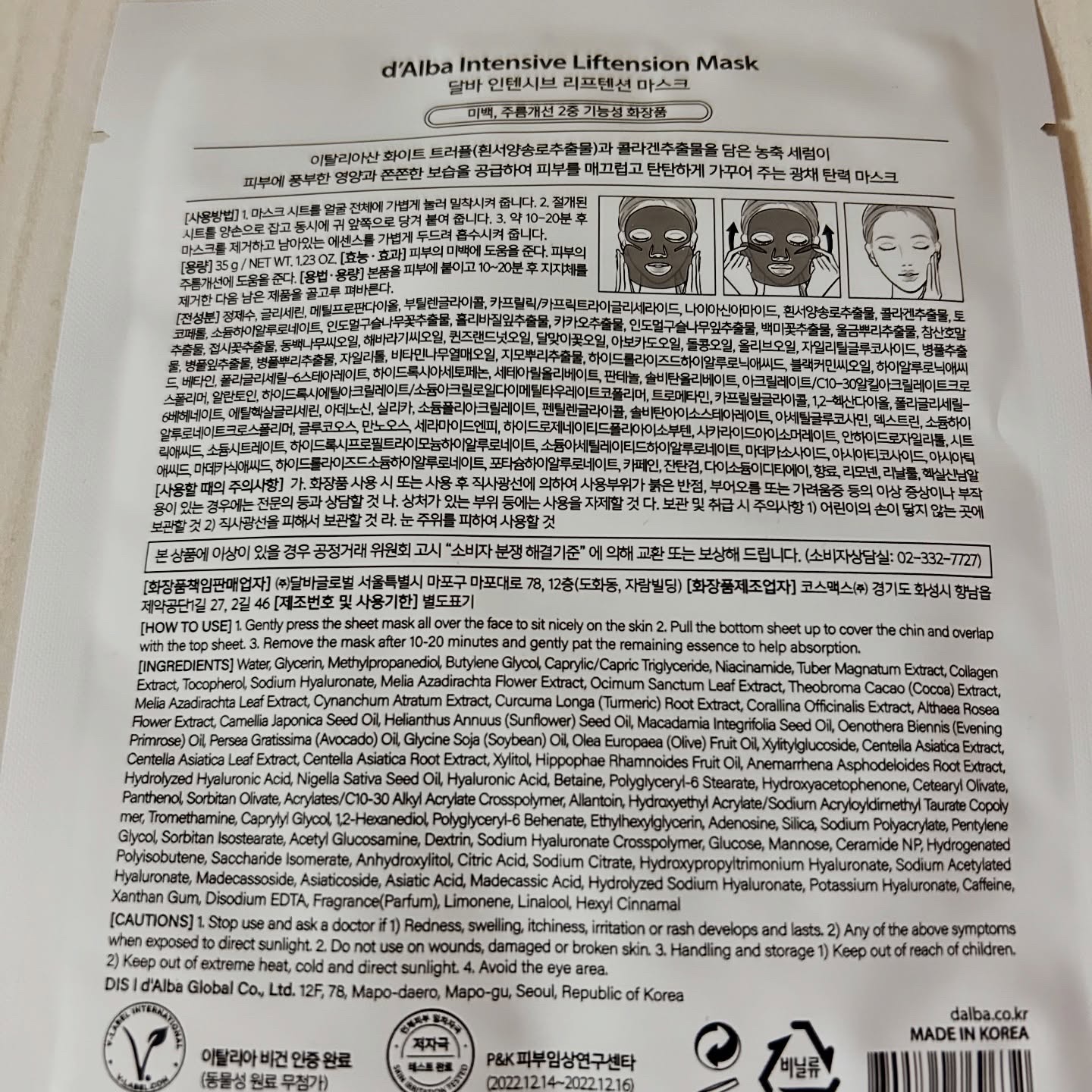 ダルバ ホワイトトリュフダブルマスクパック(鎮静/保湿) |