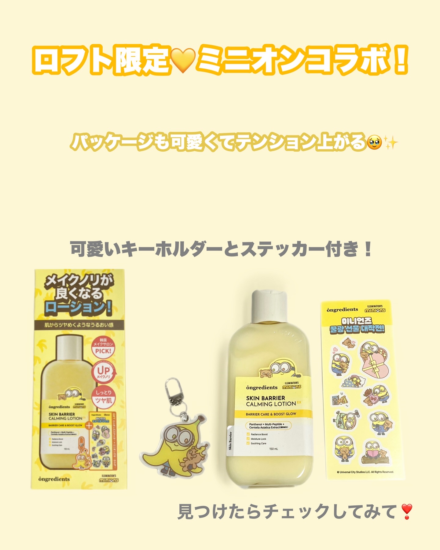 ミニオンコラボがロフト限定で販売中💛欠品店舗もあるみたいだから早めにチェックしてꔛ🚴💨✨メイク前に塗ればツヤ肌がつくれる⁉️今話題のオングリディエンツからミニオンコラボがロフト限定で販売中だよꉂꉂ📣私の行った店舗では欠品していた(߹ㅁ߹)...