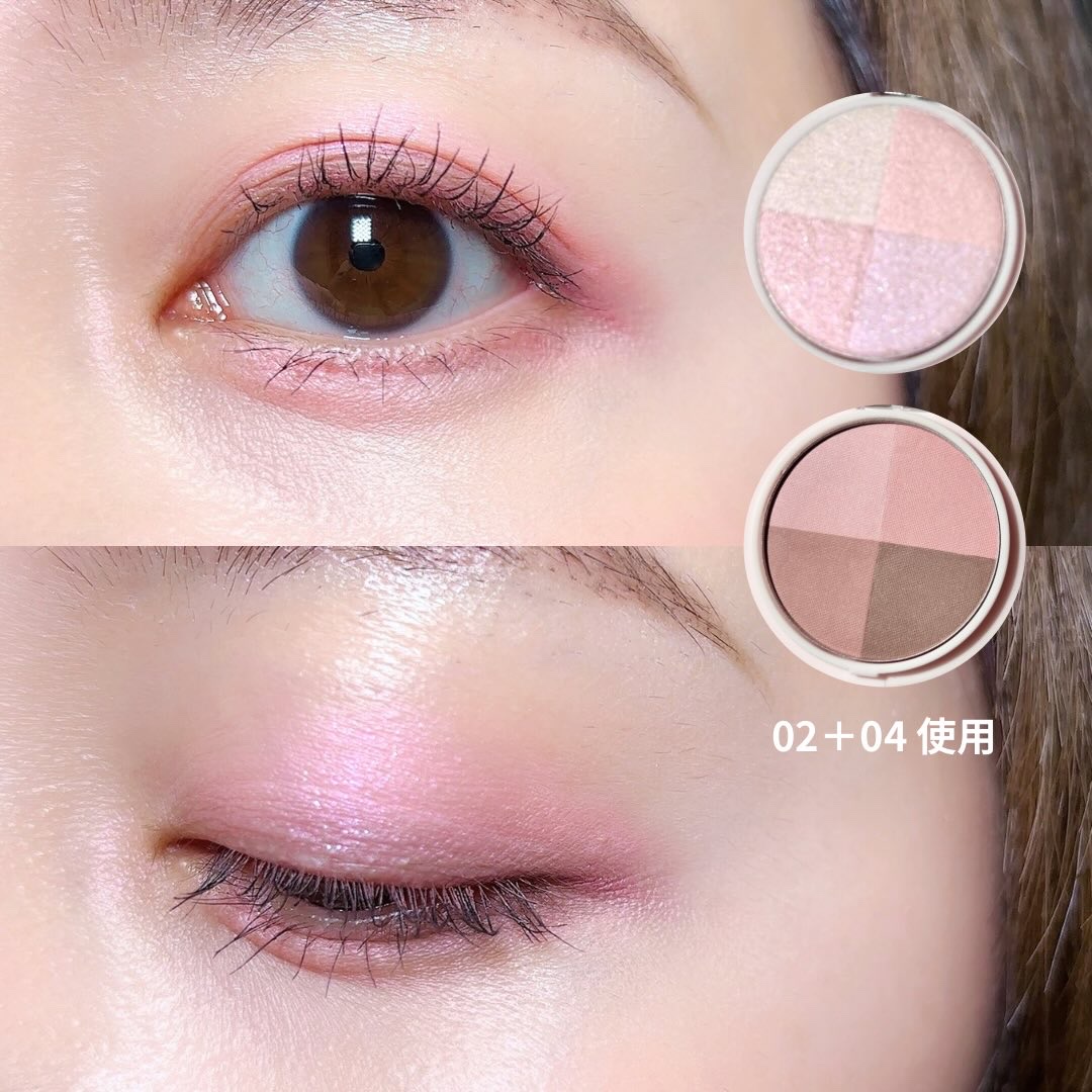 王道のピンクブラウンだけど、2色のハイライト(ラメ)が個性を出してますよね。 右下をアイホールにベースとして使うとツヤツヤまぶたになってくすみピンクも映える✨ アイメイク以外にもハイライトとして使えるので万能です。 秋っぽくも大人っぽい仕上がりのアイパレでした♡