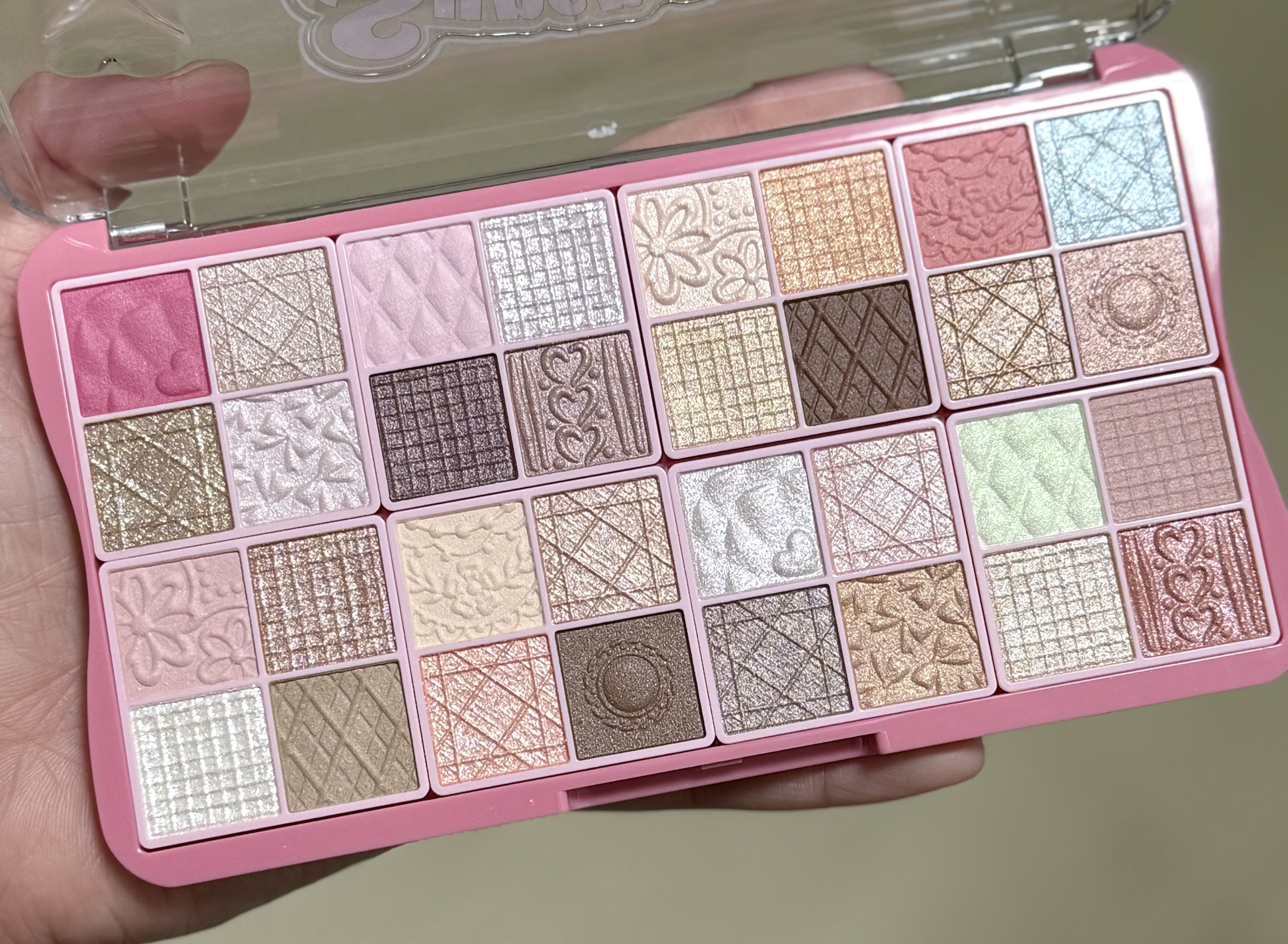 これはめっちゃくちゃ可愛い…! ラメも可愛いし色味もめちゃくちゃ可愛い🍒 でもキラキラしていてとっても可愛い♡ イエベもブルベも使えそうな万能パレットだと思います♡ パケもプチプラと思えない高級感だし、定番品も買ってみたいなと思いました。