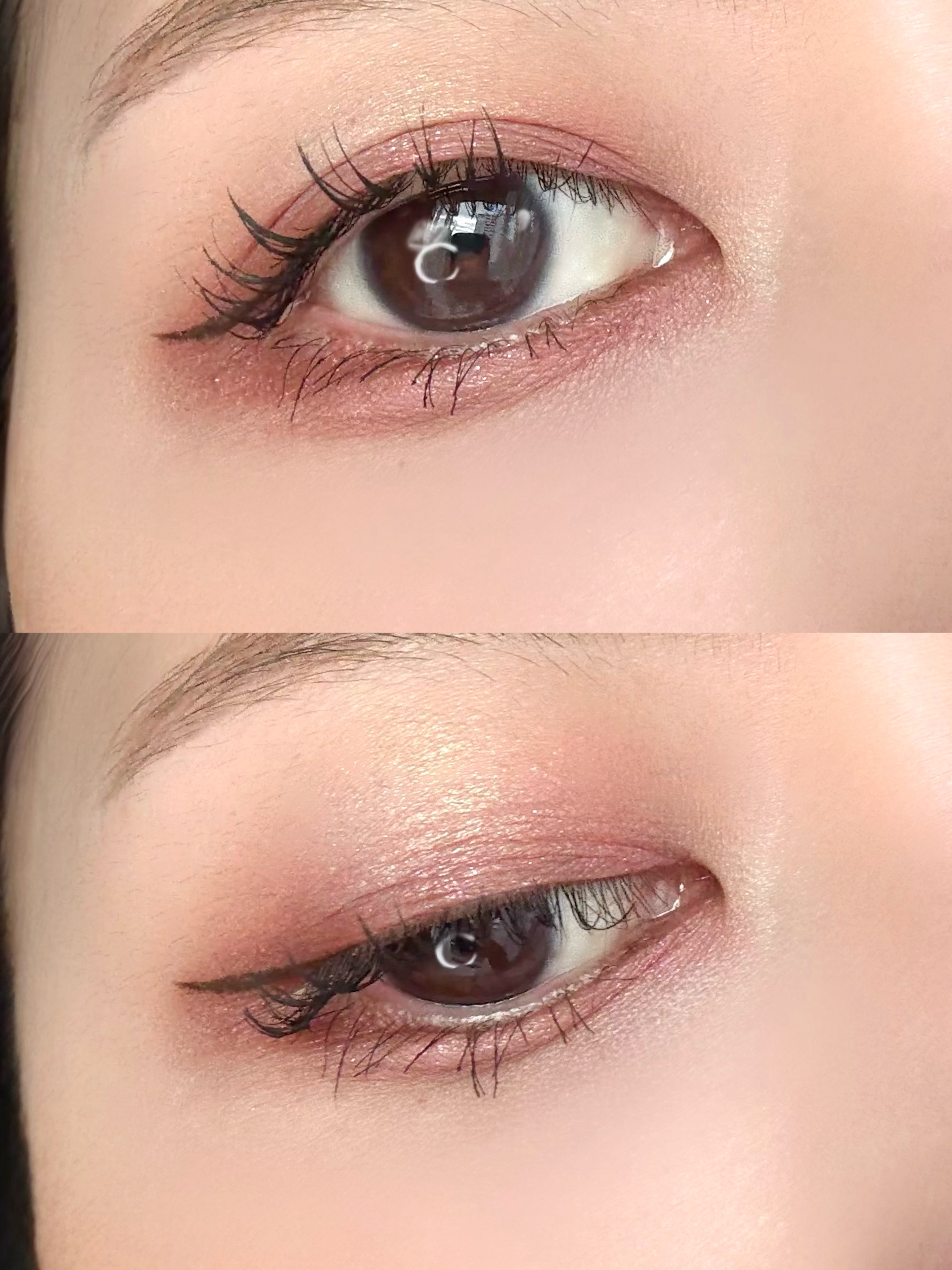 私の目では、裸眼に馴染みすぎて付けているのか付けていないのかほぼわからない状態になりました😢 採光の良い場所で撮ると多少は茶色っぽいかな?と言う感じがなくはないですが、デカ目効果だったり色の変化だったりは、私はまったく感じられませんでした。 ただ一つ、めちゃくちゃ良かったのは付け心地です。これは本当に良かった。 めちゃくちゃナチュラルなので、バレたくないけどカラコンは付けたい!と言う方には良いのかなあと思いました。