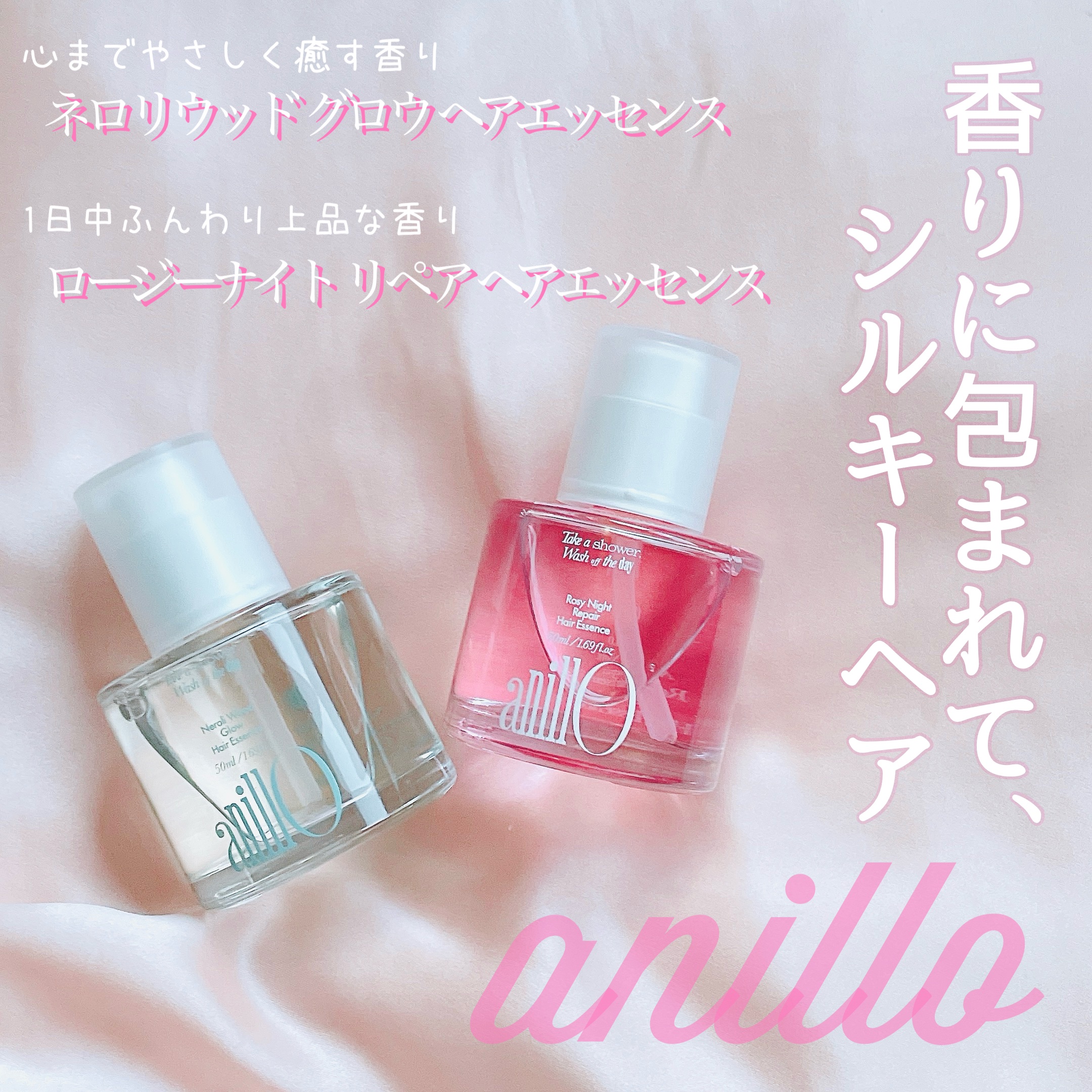香りまで“褒められる髪”にしたいならanilloが優勝🏆 軽いのにしっとりまとまってふんわり香りが続くヘアエッセンス♡💚ネロリウッド(軽やかツヤ系) ネロリ×ホワイトフラワーの上品な香り。 カラー後のパサつき髪にも◎❤️ロージーナイト(しっと...