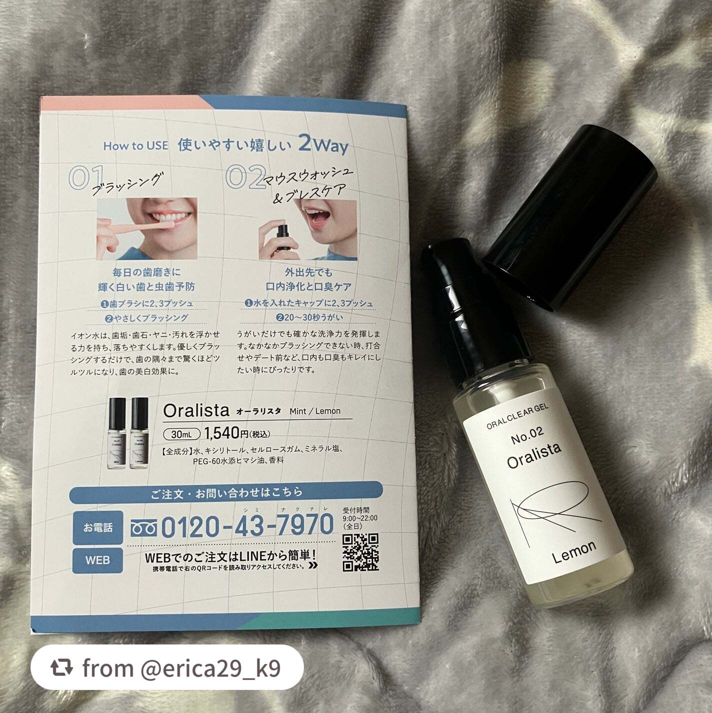 OralistaNo.02Lemon¥1,540ブラッシング・マウスウォッシュの2WAYで使用できる歯磨きジェル。イオンの力で歯垢や汚れを浮かせて落としてくれる商品。普段の歯磨き粉だと泡立って洗えたつもりになるから、発泡しないぶん丁寧に磨けて...