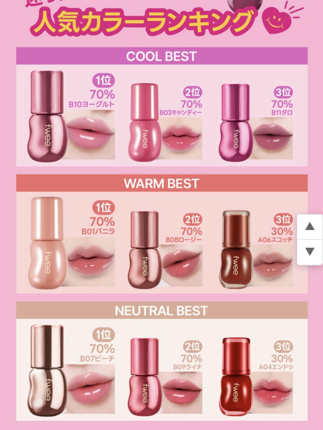 | 口紅・グロス・リップライナーランキング第31位 | ほんのりフルーツみたいな良い香りがします🍎 付けた感じのテクスチャーはぷるもち系ですね | 詳細を見る | |