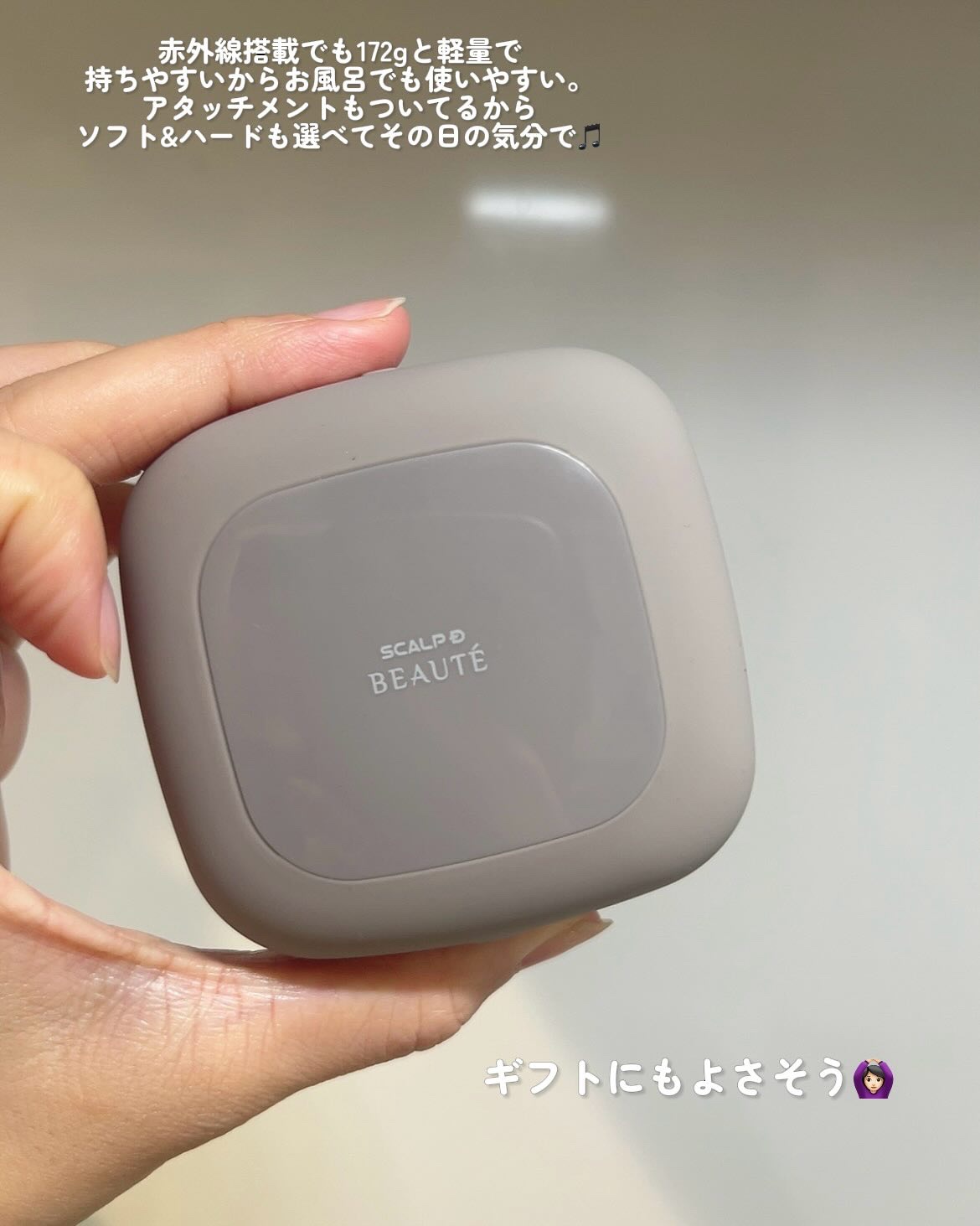 - 頭皮をグっと引き上げるブラシで極上スパ体験 4つのヘッド、合計28か所の接触点が微細な動きを放ち、確かなパワーで立体的な刺激をもたらします。また、3D頭部フィット設計により、ブラシが頭の丸みに沿って自然に頭頂部まで動くため、特別な技術は不要。頭皮にあてて軽く動かすだけで、ヘッドスパのような贅沢な体験をお楽しみいただけます。 人間工学に基づいたブラシでスッキリ洗浄 自社調査によると、女性の2人に1人が「髪だけでなく、頭皮までちゃんと洗えているか不安」に感じていますと回答※。頭皮の皮脂汚れや毛穴のつまりは、べたつきやにおいだけでなく、薄毛や抜け毛のリスクにも繋がります。「スカルプD ボーテ ビューティーヘッドスパ」は、独自技術として特許取得されている人間工学に基づいたオリジナルのブラシ設計です。シャンプー中にご使用いただくと、頭皮のスッキリ感と髪のふんわり感を体感いただけます。 ※2025年2月実施、全国20~50代女性300名への「頭皮トラブル」に関するインターネット調査より 赤外線搭載で、じんわり温熱ケア 赤外線搭載で、深部※をじんわり温めながら頭皮をほぐします。温熱ケアが、毛髪を作り出す細胞の活性化にもアプローチ。将来の美髪ケアにも繋がります。肩や首にご使用いただく際にも、温熱による血流促進で、凝りほぐしに効果が期待できます。 ※角質層まで 心地よさとフィット感を自由にカスタマイズ 「スカルプD ボーテ ビューティーヘッドスパ」のブラシ部分には、ハードタイプとソフトタイプの2種のアタッチメントが付属されています。また、強さレベルは3段階から選択可能。お好みのブラシタイプとモードで、あなたの頭皮に合ったマッサージが可能です。 <アタッチメント> ・ソフトタイプ(やさしい刺激、敏感肌・初心者向け) ・ハードタイプ(しっかりした刺激、深層マッサージ向け) <強さレベル> ① ソフトケアモード ② ナチュラルケアモード ③ ディープケアモード 防水仕様&軽量!手のひらサイズで疲れにくく、続けやすい 「スカルプD ボーテ ビューティーヘッドスパ」は、入浴中や入浴後のタイミングでご使用いただくことをおすすめしています。そのため、IPX7防水仕様で浴室でも気軽に使用可能。また、手のひらサイズで172gとスマホより軽く※、使いやすさにもこだわりました。 ※iPhone Pro Maxシリーズと比較