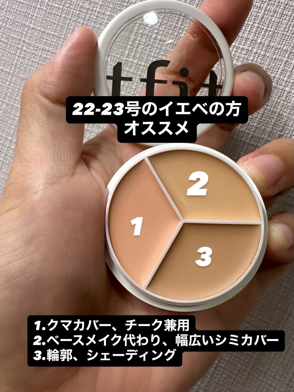 - クマからニキビ跡、シミまでこれ1つでカバー。 3色タイプだからこそ、気になるところや肌色を選ばずにご使用いただけます。 リキッドタイプを圧縮した高濃度バームのため高カバー高密着*¹を実現。 コンシーラーだけでなくコントアとしても使用可能です。 *1メーカー比