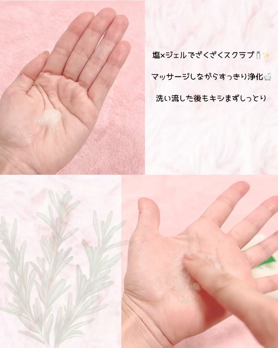 - <ローズマリー スカルプ スクラブ> 海塩(アンデス湖の塩)、塩化Na(塩)、ローズマリー葉エキス(13.8%)、精製水、アカマツ葉エキス、ココイルメチルタウリンNa(ココナッツ由来の洗浄剤)、グリセリン(植物由来の保湿剤)、ココベタイン(ココナッツ由来の洗浄剤)、ラウリルベタイン(植物由来の保湿剤)、ショウガ根エキス、キサンタンガム(タンパク質発酵保湿 / 粘度調節剤)、プロパンジオール(植物由来の保湿剤)、エチルヘキシルグリセリン(柔軟剤)、ローズマリー葉油(4,630ppm)、メボウキ葉エキス、カミメボウキ葉エキス、ハナハッカ葉エキス、ビフィズス菌培養溶解質(発酵保湿剤)、乳酸桿菌培養溶解質(発酵保湿剤)、カフェイン(頭皮コンディショニング剤)、デクスパンテノール(抜け毛緩和機能性成分)、ワサビノキ種子油、メントール(頭皮清涼剤)、サリチル酸(抜け毛緩和機能性成分)、アトラスシーダー樹皮油、シベリアモミ油、イタリアイトスギ油、ナイアシンアミド(抜け毛緩和機能性成分)、カミツレ花エキス、クマツヅラエキス、アンソッコウエキス、DPG(保湿剤)、*リモネン(ローズマリーオイルに含まれる成分)、グアーヒドロキシプロピルトリモニウムクロリド(グアー豆由来の毛髪柔軟剤)、メリアアザジラクタ葉エキス、メリアアザジラクタ花エキス、コクシニアインディカ果実エキス、コハク、ナス果実エキス、ウコン根エキス、サンゴモエキス、EDTA-2Na(酸化防止剤)、1,2-ヘキサンジオール(柔軟剤)