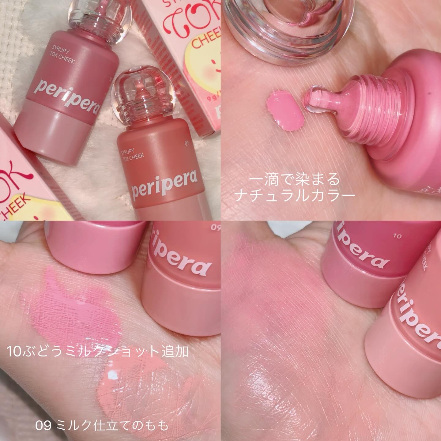 peripera大人気シロップチーク新色♡ももとぶどう、どちらが好き?@periperajapanペリペラシロッピートックチーク09PALEPEACHミルク仕立てのもも▶︎ミルクが染み込んだようなふんわりクリアなピンクピーチ10PALELAV...