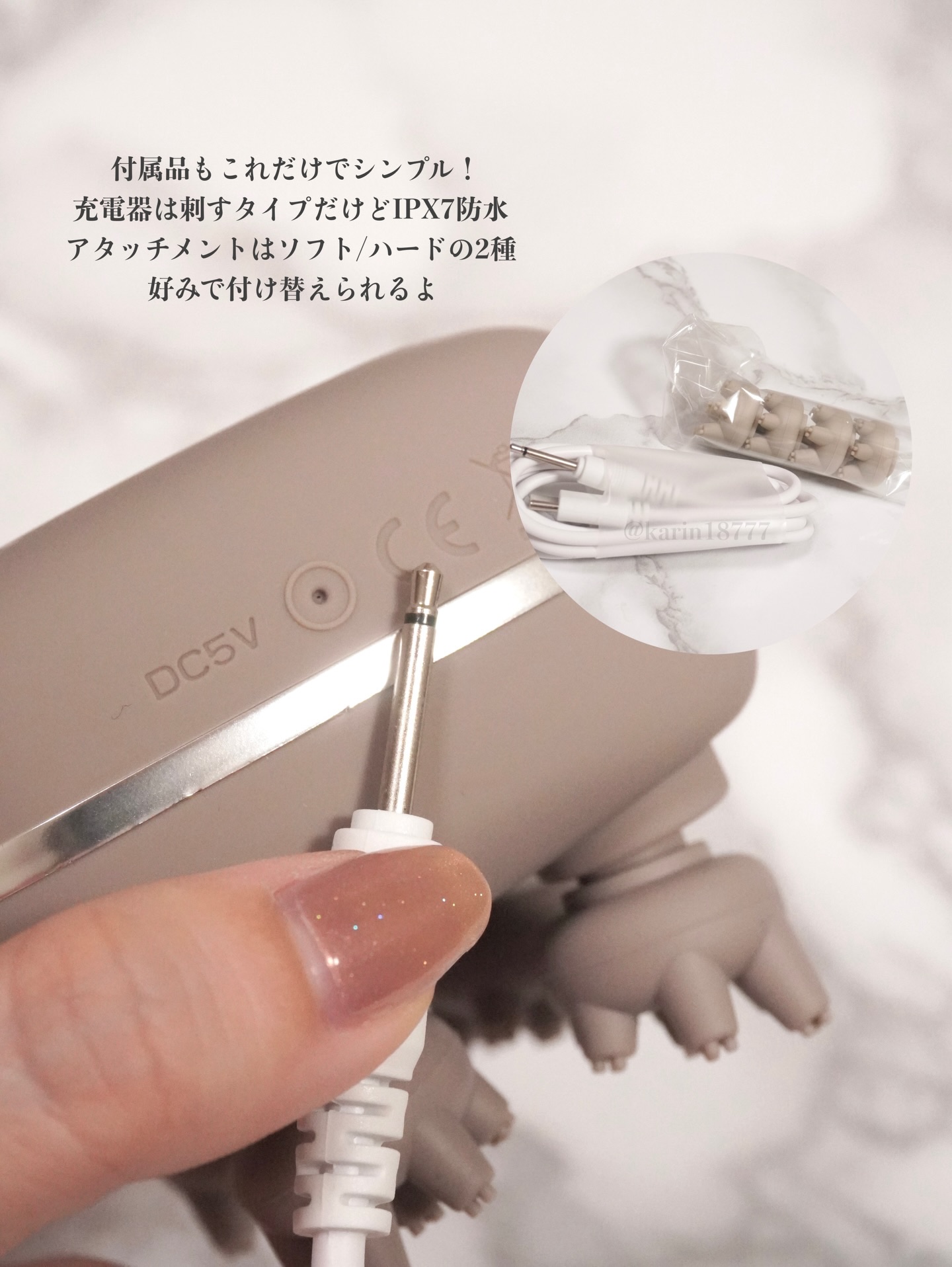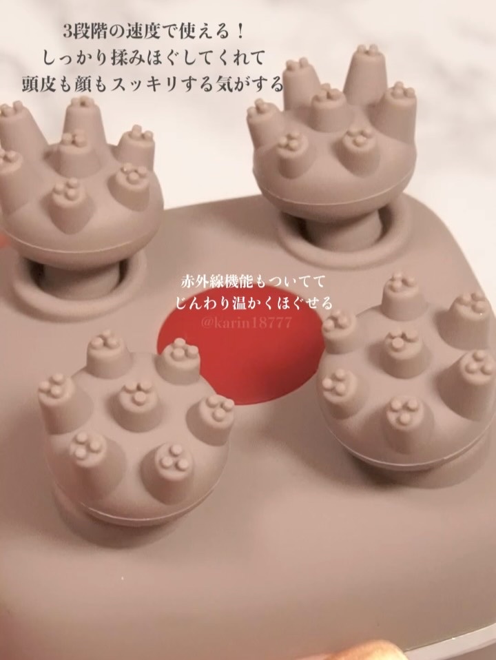 - 頭皮をグっと引き上げるブラシで極上スパ体験 4つのヘッド、合計28か所の接触点が微細な動きを放ち、確かなパワーで立体的な刺激をもたらします。また、3D頭部フィット設計により、ブラシが頭の丸みに沿って自然に頭頂部まで動くため、特別な技術は不要。頭皮にあてて軽く動かすだけで、ヘッドスパのような贅沢な体験をお楽しみいただけます。 人間工学に基づいたブラシでスッキリ洗浄 自社調査によると、女性の2人に1人が「髪だけでなく、頭皮までちゃんと洗えているか不安」に感じていますと回答※。頭皮の皮脂汚れや毛穴のつまりは、べたつきやにおいだけでなく、薄毛や抜け毛のリスクにも繋がります。「スカルプD ボーテ ビューティーヘッドスパ」は、独自技術として特許取得されている人間工学に基づいたオリジナルのブラシ設計です。シャンプー中にご使用いただくと、頭皮のスッキリ感と髪のふんわり感を体感いただけます。 ※2025年2月実施、全国20~50代女性300名への「頭皮トラブル」に関するインターネット調査より 赤外線搭載で、じんわり温熱ケア 赤外線搭載で、深部※をじんわり温めながら頭皮をほぐします。温熱ケアが、毛髪を作り出す細胞の活性化にもアプローチ。将来の美髪ケアにも繋がります。肩や首にご使用いただく際にも、温熱による血流促進で、凝りほぐしに効果が期待できます。 ※角質層まで 心地よさとフィット感を自由にカスタマイズ 「スカルプD ボーテ ビューティーヘッドスパ」のブラシ部分には、ハードタイプとソフトタイプの2種のアタッチメントが付属されています。また、強さレベルは3段階から選択可能。お好みのブラシタイプとモードで、あなたの頭皮に合ったマッサージが可能です。 <アタッチメント> ・ソフトタイプ(やさしい刺激、敏感肌・初心者向け) ・ハードタイプ(しっかりした刺激、深層マッサージ向け) <強さレベル> ① ソフトケアモード ② ナチュラルケアモード ③ ディープケアモード 防水仕様&軽量!手のひらサイズで疲れにくく、続けやすい 「スカルプD ボーテ ビューティーヘッドスパ」は、入浴中や入浴後のタイミングでご使用いただくことをおすすめしています。そのため、IPX7防水仕様で浴室でも気軽に使用可能。また、手のひらサイズで172gとスマホより軽く※、使いやすさにもこだわりました。 ※iPhone Pro Maxシリーズと比較