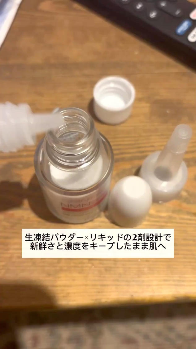 - 次世代エイジングケア※6純粋NMN※2 濃度1%※3+ナイアシンアミド※5 今、エイジングケア※6で大注目の成分、NMN※2の1%配合※3を実現。NMNに変換され、美肌サイクルをサポートするナイアシンアミド※5と合わせることで、肌が美しくなろうとする力をサポート。うるおいに満ちたふっくらとしたハリ肌へと導きます。 NMN※2をよりフレッシュな状態で使用できるよう、NMN※2はフリーズドライ技術を用いたパウダーに。さらにリキッドには、ナイアシンアミド※5を配合。2つを混ぜ合わせるとシュッと溶け、濃度を保った状態のまま使い切ることができます。 *混ぜた後は1か月を目安にご使用ください。 ※2 ニコチンアミドモノヌクレオチド(皮フコンディショニング成分)※3 製造時の濃度(2剤を混ぜた際の最終濃度)※5 皮フコンディショニング成分 ※6 年齢に応じたお手入れ