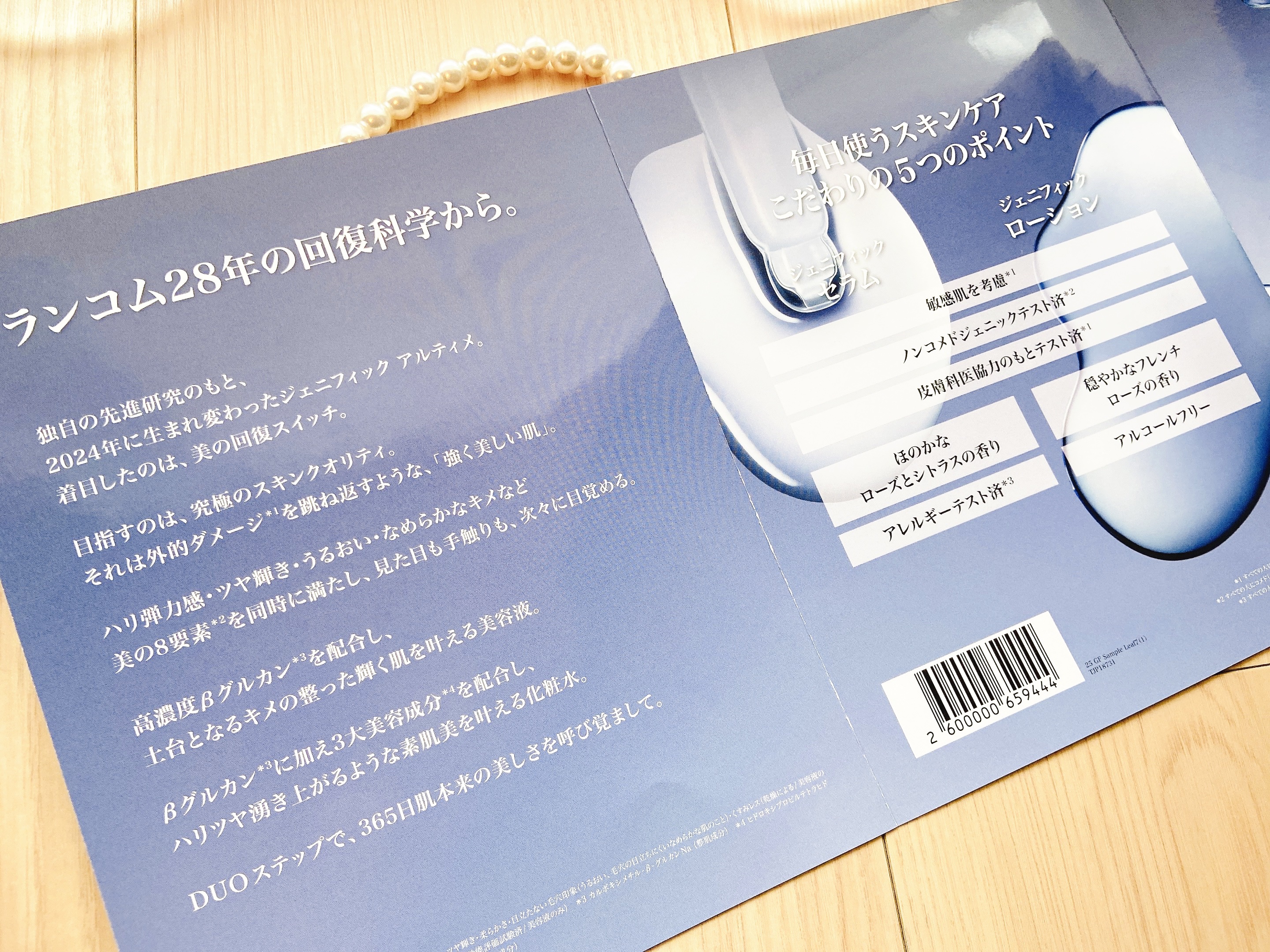ランコムというと海外メーカーのデパコスブランドというイメージが強いですが...なんとジェニフィックは日本のために特別に開発されたみずみずしいテクスチャーと美肌菌に着目した厳選成分が特徴ですが... 新成分として配合されたのは⳹βグルカン*2⳼様々な肌要素にアプローチしてくれるそうなのですが…なんとそのβグルカンを1滴に90兆個配合しているというから驚き⤴︎✨ 手に取ってみるとフワッと優しく高級感のある花のような香りが広がってとてもいい香り𖥧𖧧 ˒˒ フローラルローズとシトラスの香りなのだとか