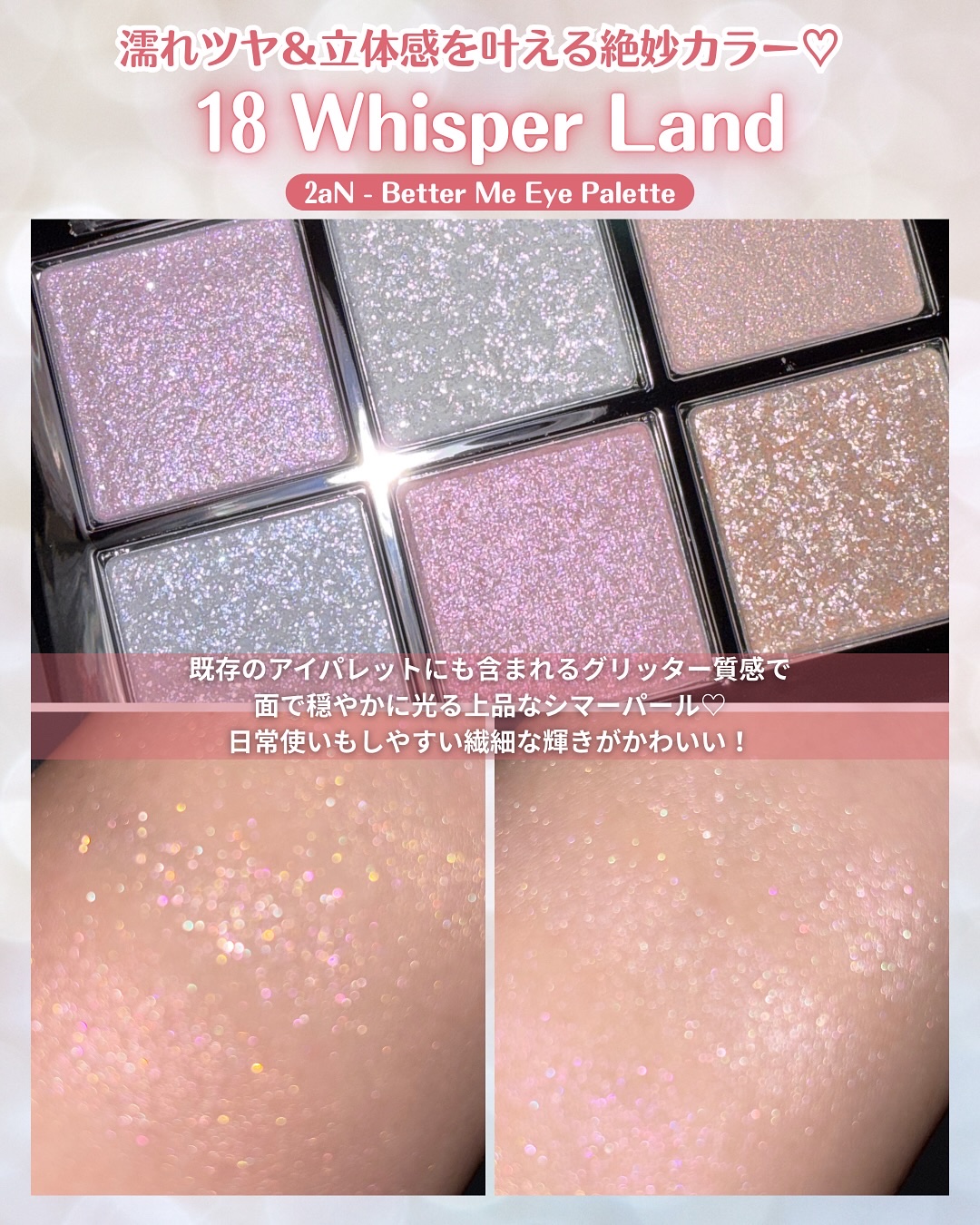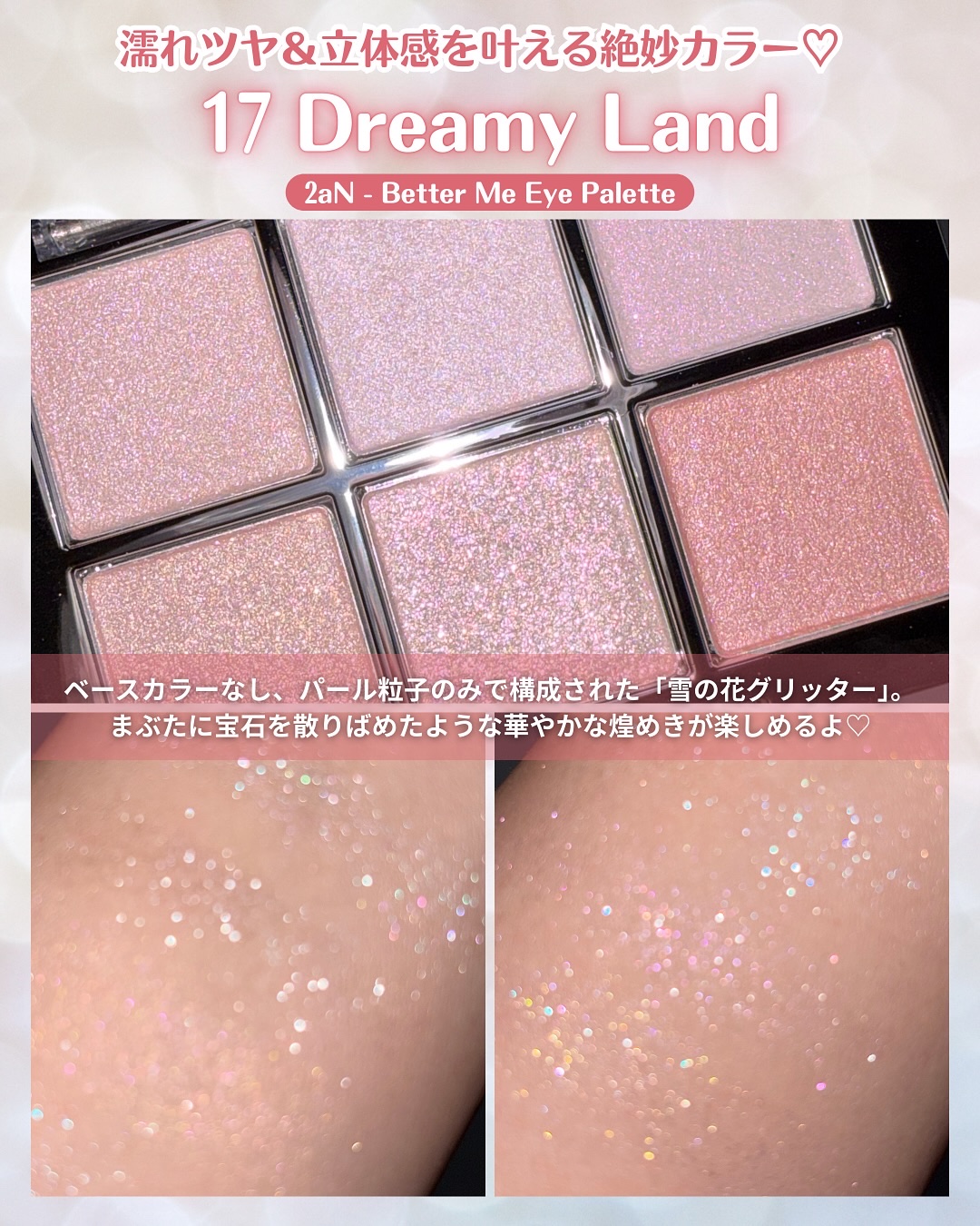 ✨2aN“ドリーミーな世界観”ドリームファンタジーコレクション✨🎨BetterMeEyePalette17DreamyLand/18WhisperLandデイリーも個性派も自由自在。全色パールの“オールパールパレット”で、重さゼロの密着感&長...