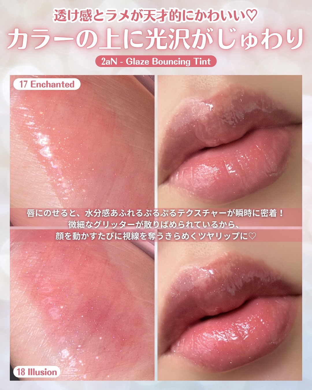 | 透け感のある発色が美しく 塗った後のツヤ感と保湿力も◎ 色展開が天才的で全色可愛すぎる…! | 詳細を見る | ||