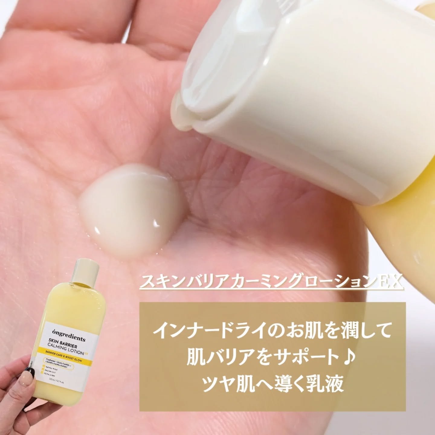 ♡Ongredientsスキンバリアカーミングソフナーとてもお肌に良さそうな化粧水を使わせていただきましたツボクサエキス、ヒアルロン酸、セラミド配合で保湿+鎮静+ツヤ肌ケアを一気にできる化粧水だそうで敏感肌の方にもオススメさらっとしたテクスチ...