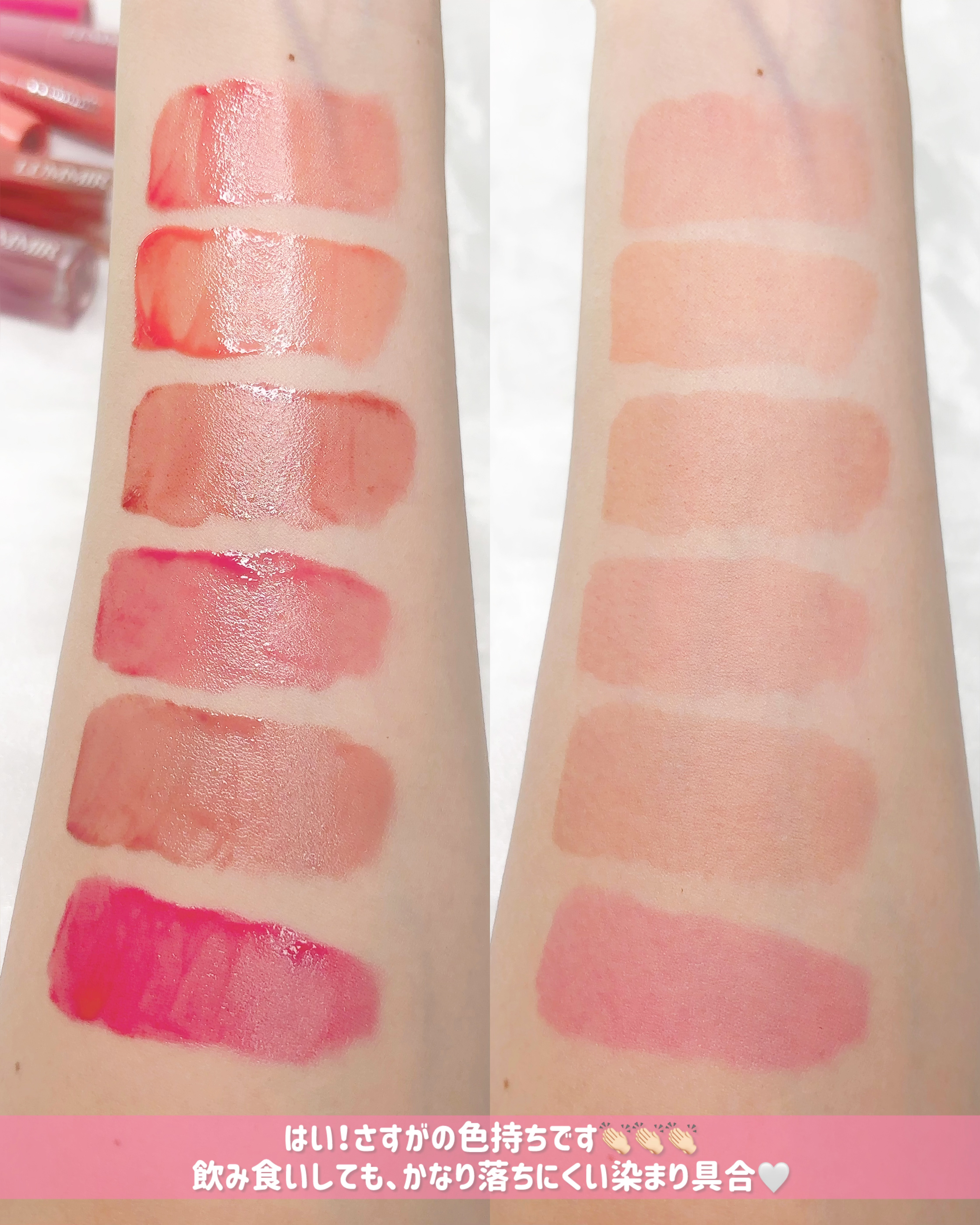 | リップティントランキング第3位 | 重ねて塗っても、ちゅるんと透け感が残って明るめカラーがとっても映える…💕色残りも◎ | 詳細を見る | ||