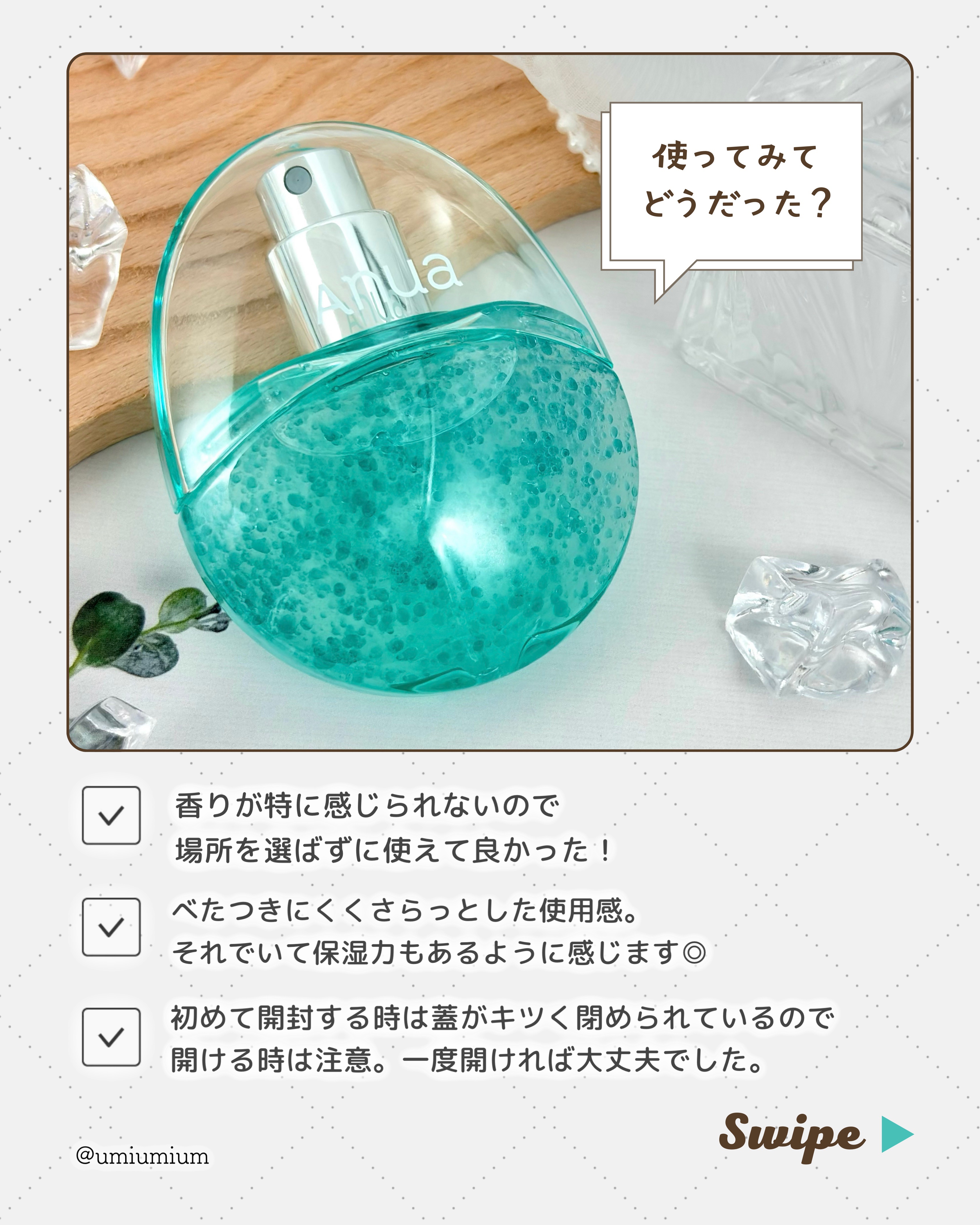 🩵うるツヤミストがついに登場AnuaPDRNヒアルロン酸ハイドレイティングミストすでにSNSで話題になっているAnuaさんの新作アイテムになります🥹🩵ポイント①オイルビーズを閉じ込めたウォータリーテクスチャーなミスト化粧水②3つの成分を閉じ込...