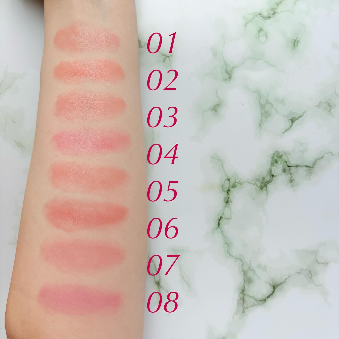 リップはふんわり発色でナチュラルなつけ心地💐 元の唇が染まったかのように発色するのでカラーによってナチュラルメイクにもしっかりメイクにも馴染む💄 カラーは4色展開で 01 pop coral サーモンピンクぽくてイエベ春向き 02 vitamin orange オレンジブラウンイエベ秋&薄く塗れば春も? 03 mellow pink ピンクに少しブラウン?ブルベ夏とイエベ春もいけそう 04 me-her red レッドブラウンブルベ冬と人によってはイエベ秋もいけるかも 私はしっかり発色の04 ミーハーレッドがお気に入り! ブルベ夏ですが薄めに使用すればいけました♪ 名前まで可愛くてさすがきりまるさん🥺 2度塗りで発色もだいぶ変わるのでぜひテスターも試しに行ってほしい❤️