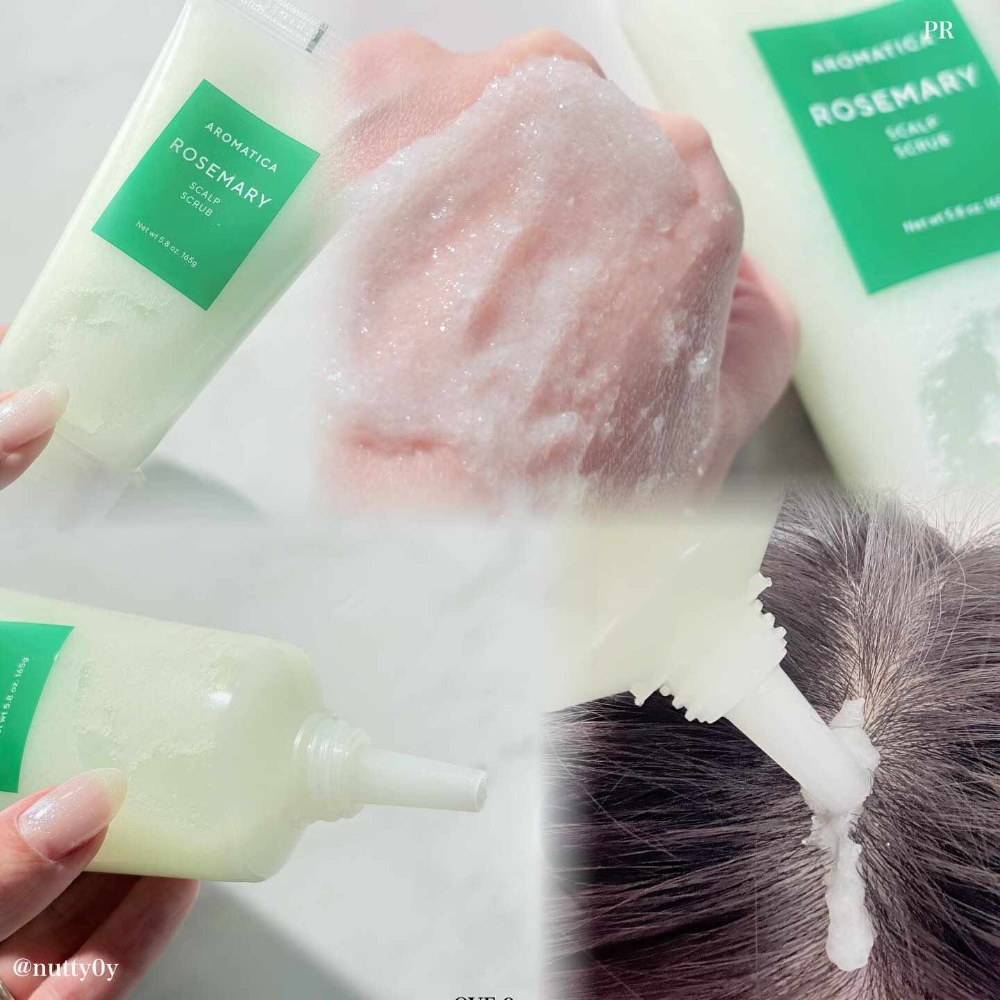 アロマティカのローズマリースカルプスクラブ🍃美容家に話題らしく、私も何度か見かけた事があったのでずっと気になっていました🤍清涼感と香りで疲れをほぐし、血行促進皮を引き締め、たるみにもアプローチするスカルプケア。シャンプー前に頭皮へ塗るのですが...
